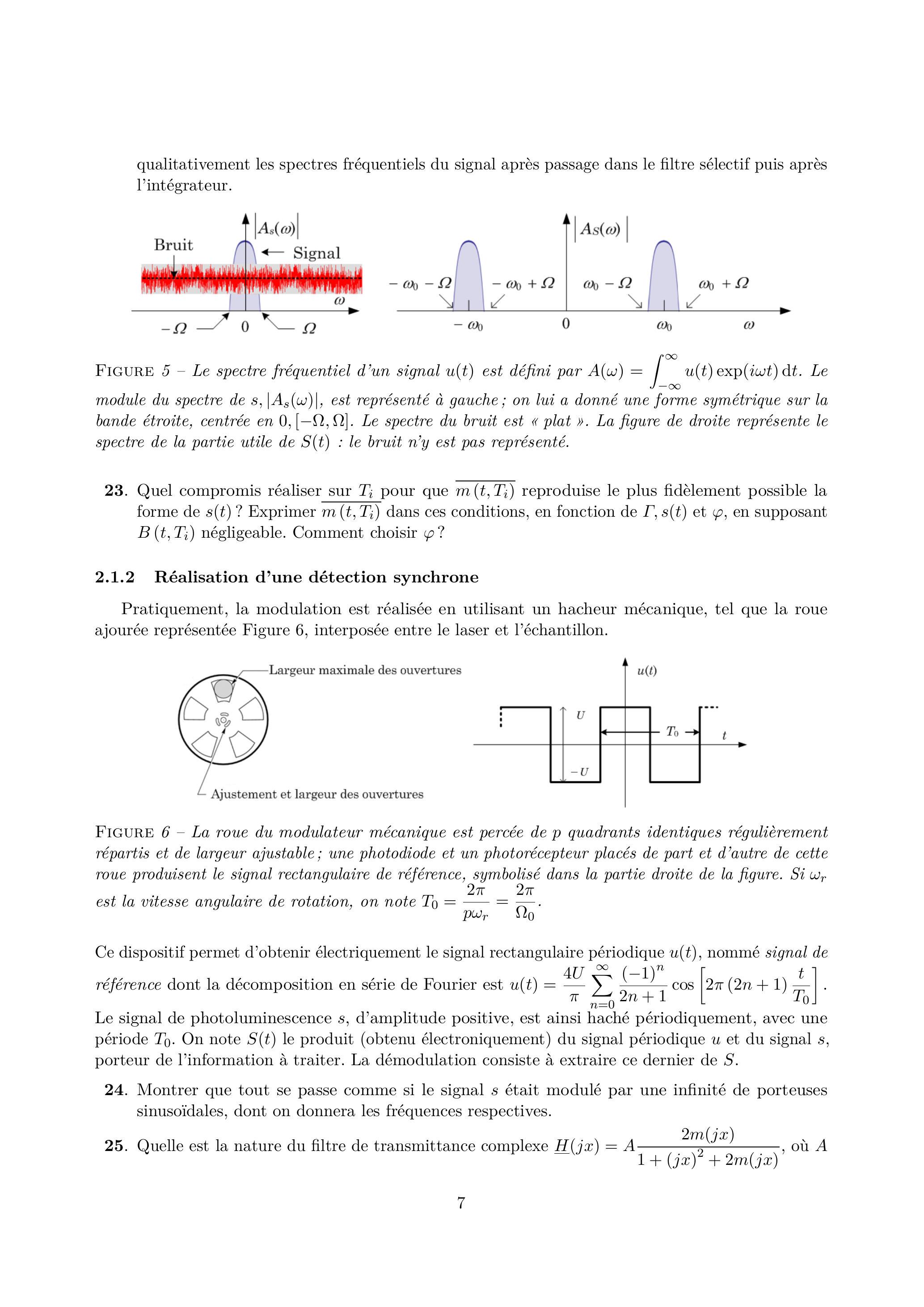 Ce dispositif permet d'obtenir électriquement le signal rectangulaire périodique , nommé signal de référence dont la décomposition en série de Fourier est . Le signal de photoluminescence , d'amplitude positive, est ainsi haché périodiquement, avec une période . On note le produit (obtenu électroniquement) du signal périodique et du signal , porteur de l'information à traiter. La démodulation consiste à extraire ce dernier de .