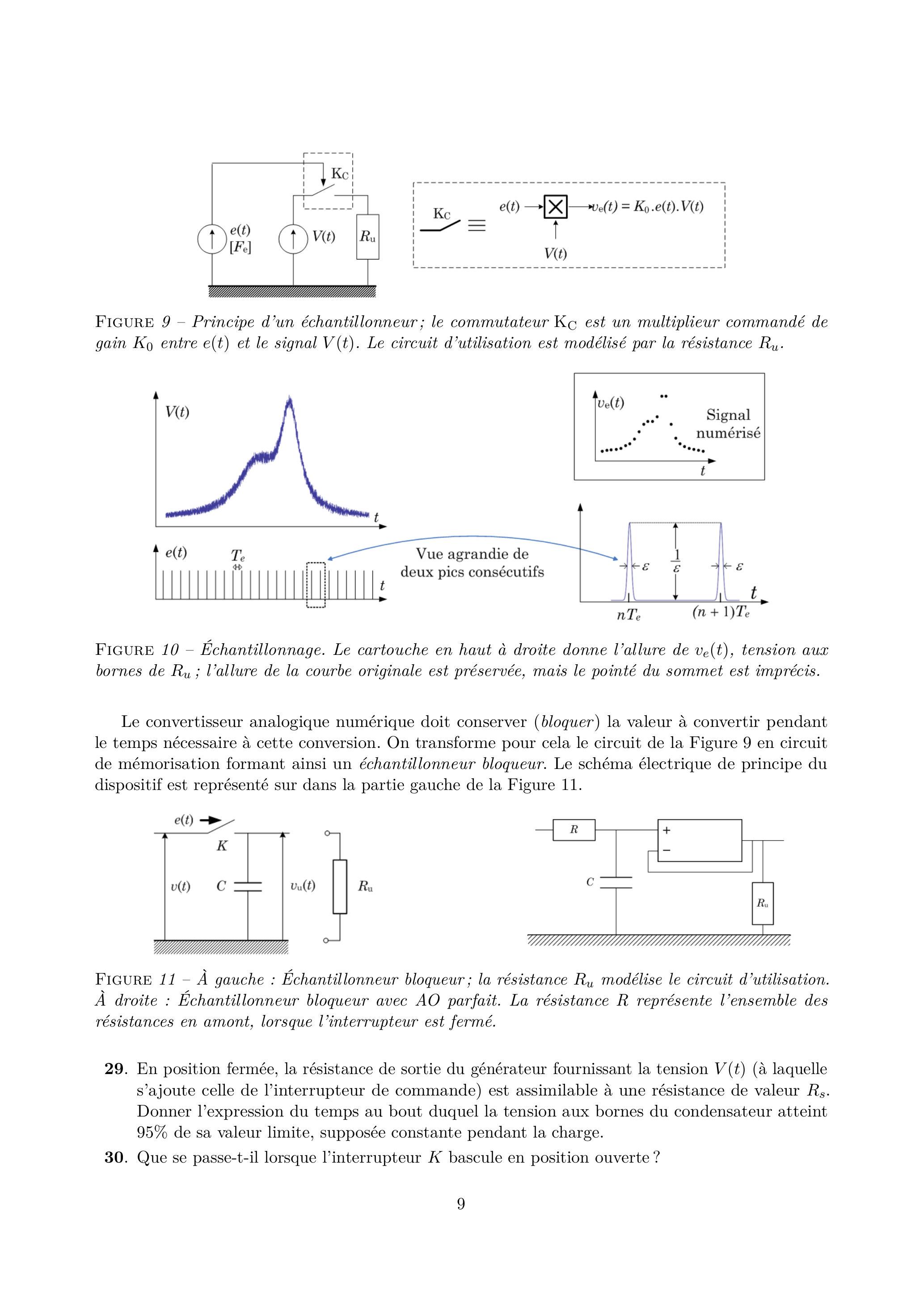 La conversion analogique numérique commence par l'échantillonnage, transformation du signal continu analogique en signal discontinu. L'élément réalisant cette transformation (Figure 9) est essentiellement un interrupteur commandé par une tension périodique de fréquence ( est la période de fermeture de l'interrupteur). La durée de fermeture est très petite devant .