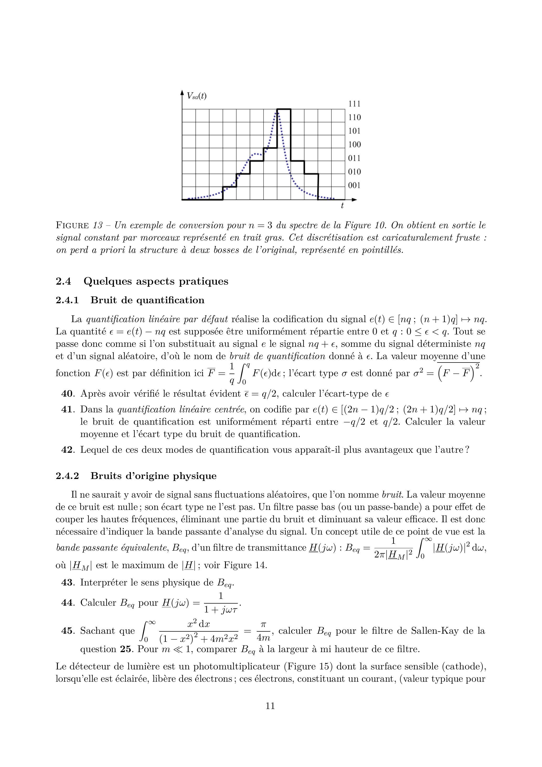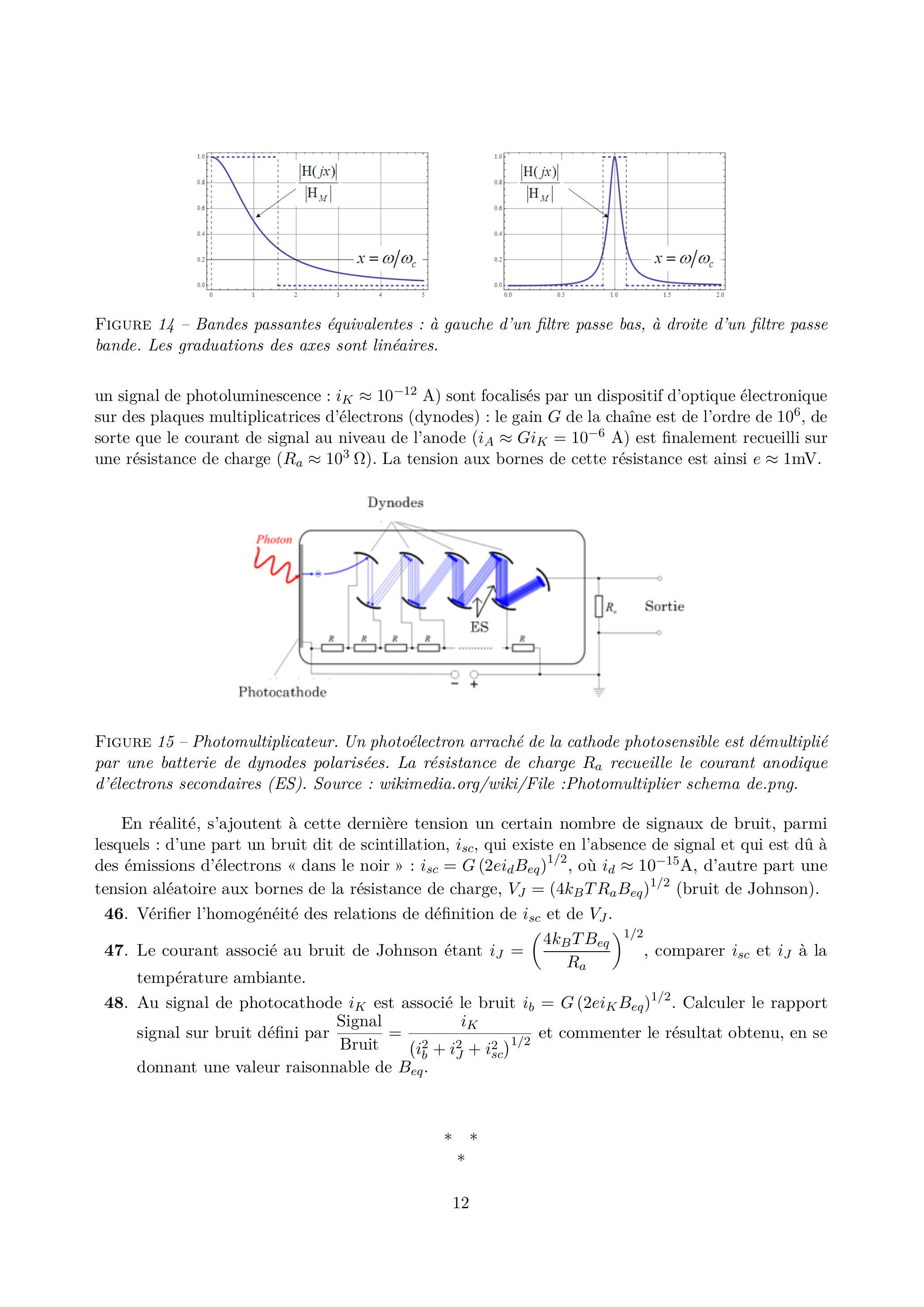 48. Au signal de photocathode est associé le bruit . Calculer le rapport signal sur bruit défini par et commenter le résultat obtenu, en se donnant une valeur raisonnable de .