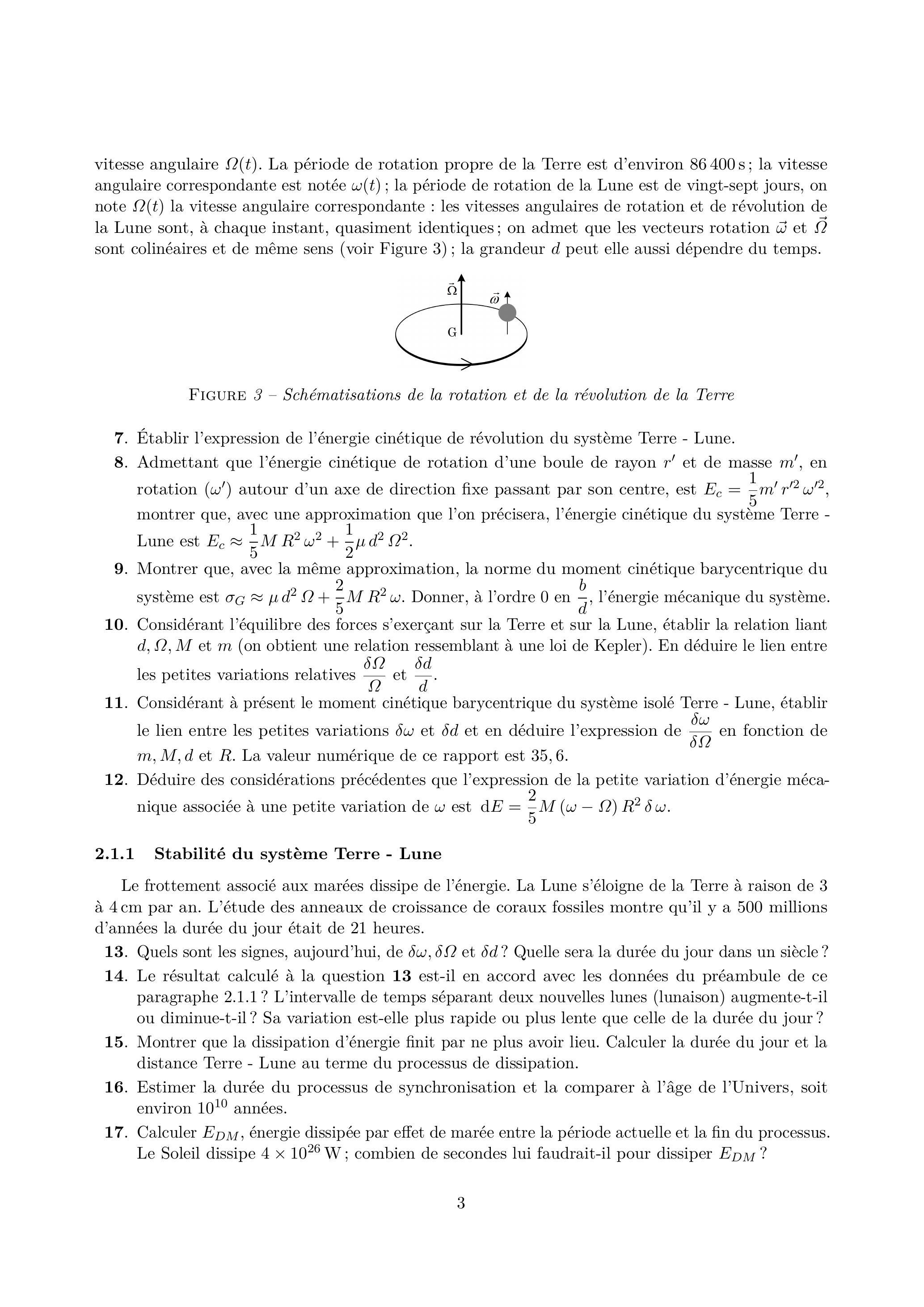 15. Montrer que la dissipation d'énergie finit par ne plus avoir lieu. Calculer la durée du jour et la distance Terre - Lune au terme du processus de dissipation.