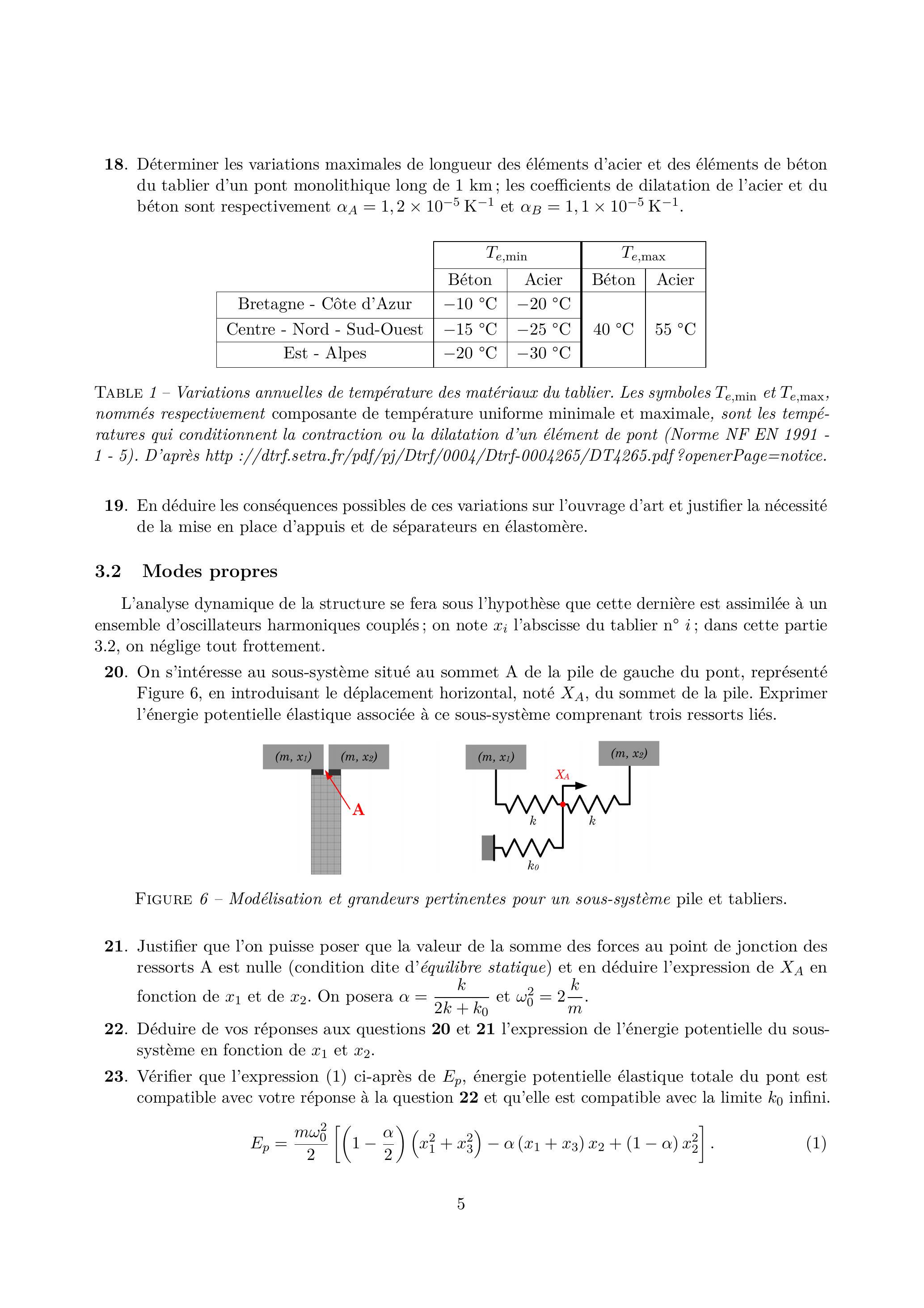 Déterminer les variations maximales de longueur des éléments d'acier et des éléments de béton du tablier d'un pont monolithique long de 1 km ; les coefficients de dilatation de l'acier et du béton sont respectivement et .