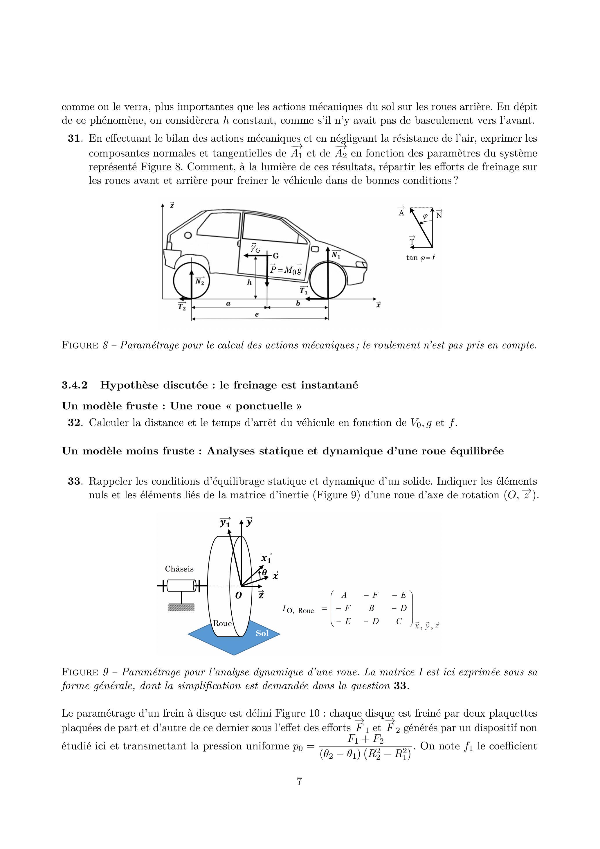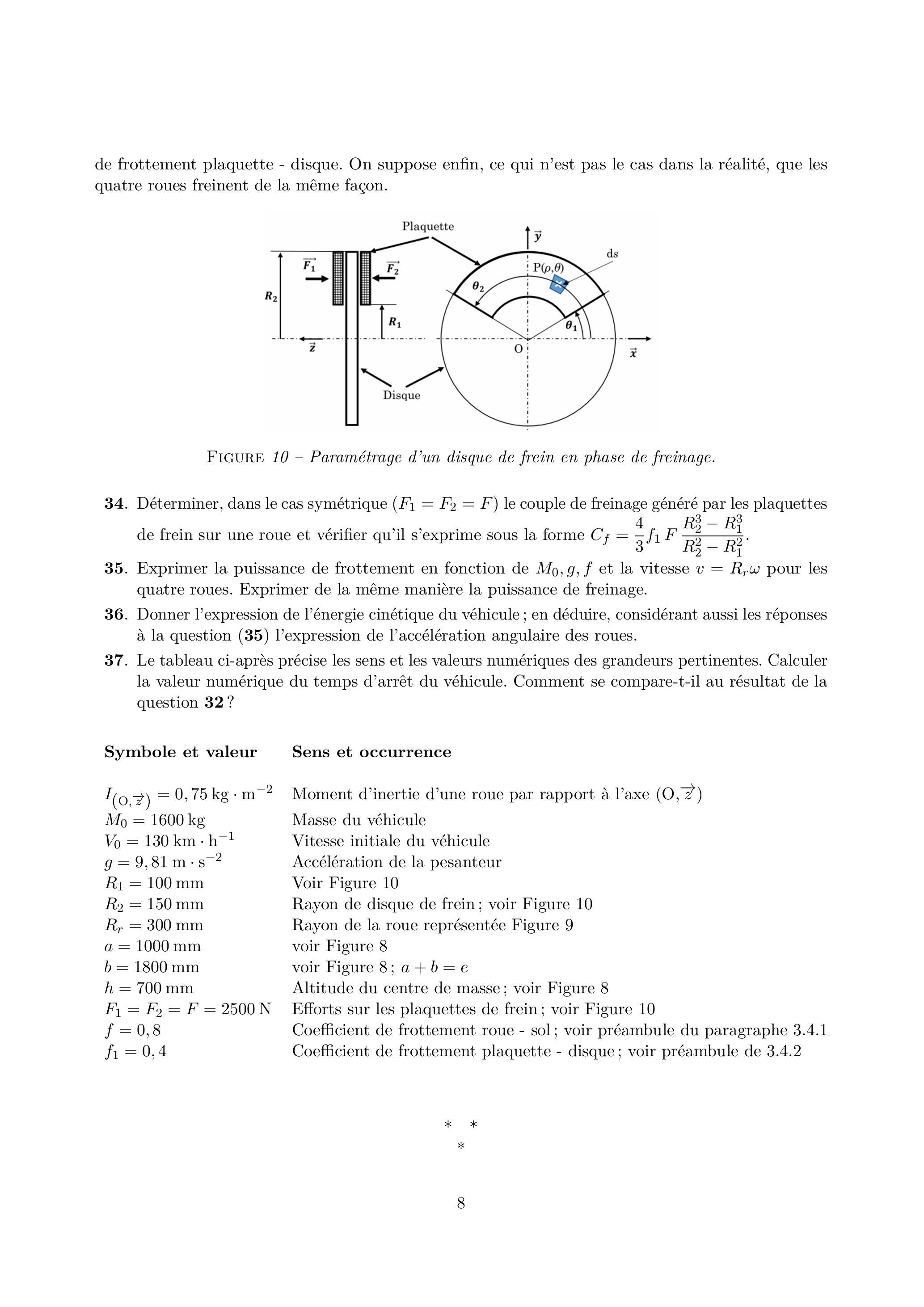 Exprimer la puissance de frottement en fonction de et la vitesse pour les quatre roues. Exprimer de la même manière la puissance de freinage.