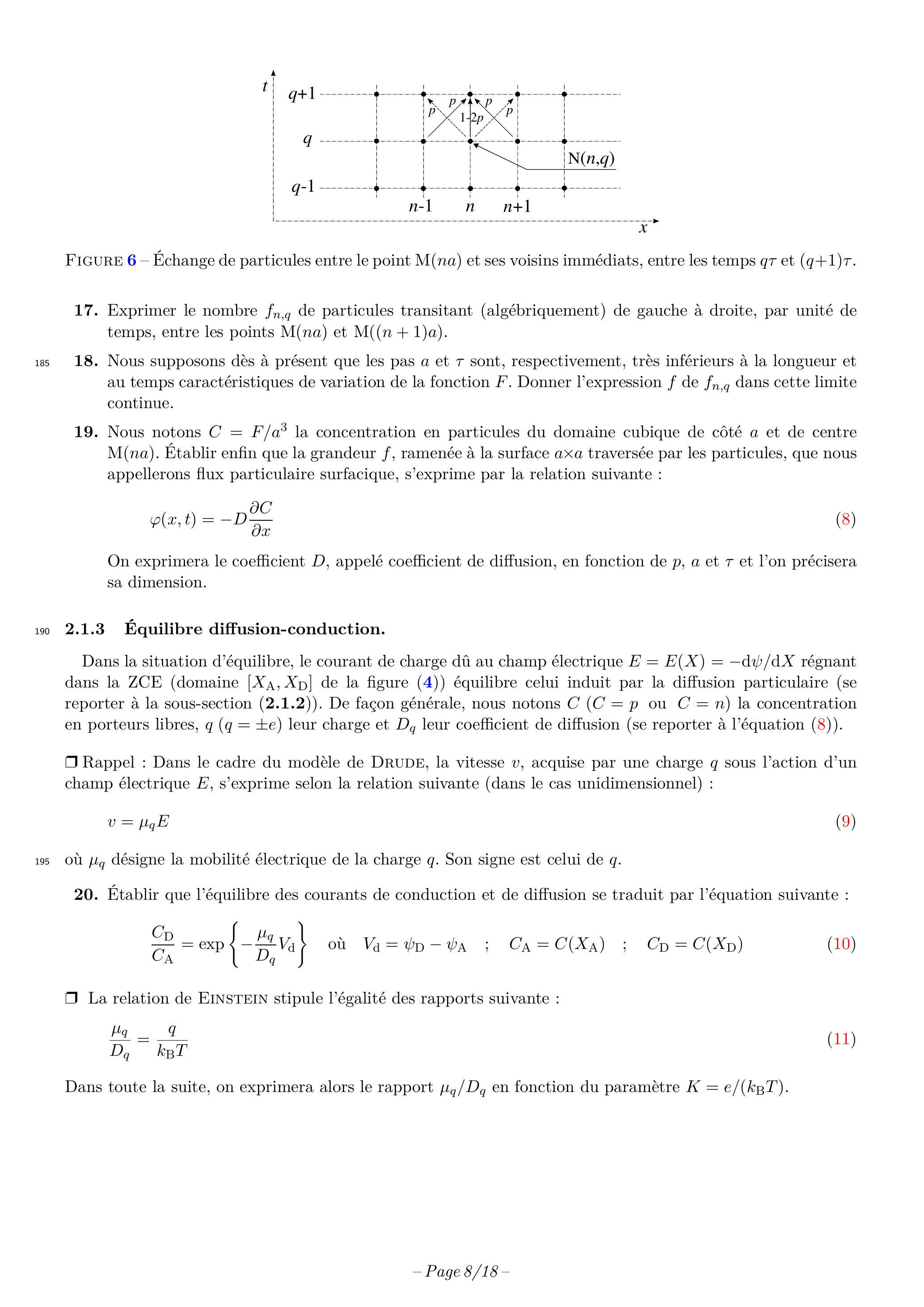 27. En établissant un bilan gain-perte sur le nombre de trous libres, appliqué à une portion élémentaire du domaine (4), sur l'intervalle de temps , établir l'équation différentielle vérifiée par la fonction , en régime stationnaire. On y fera apparaître la longueur caractéristique .