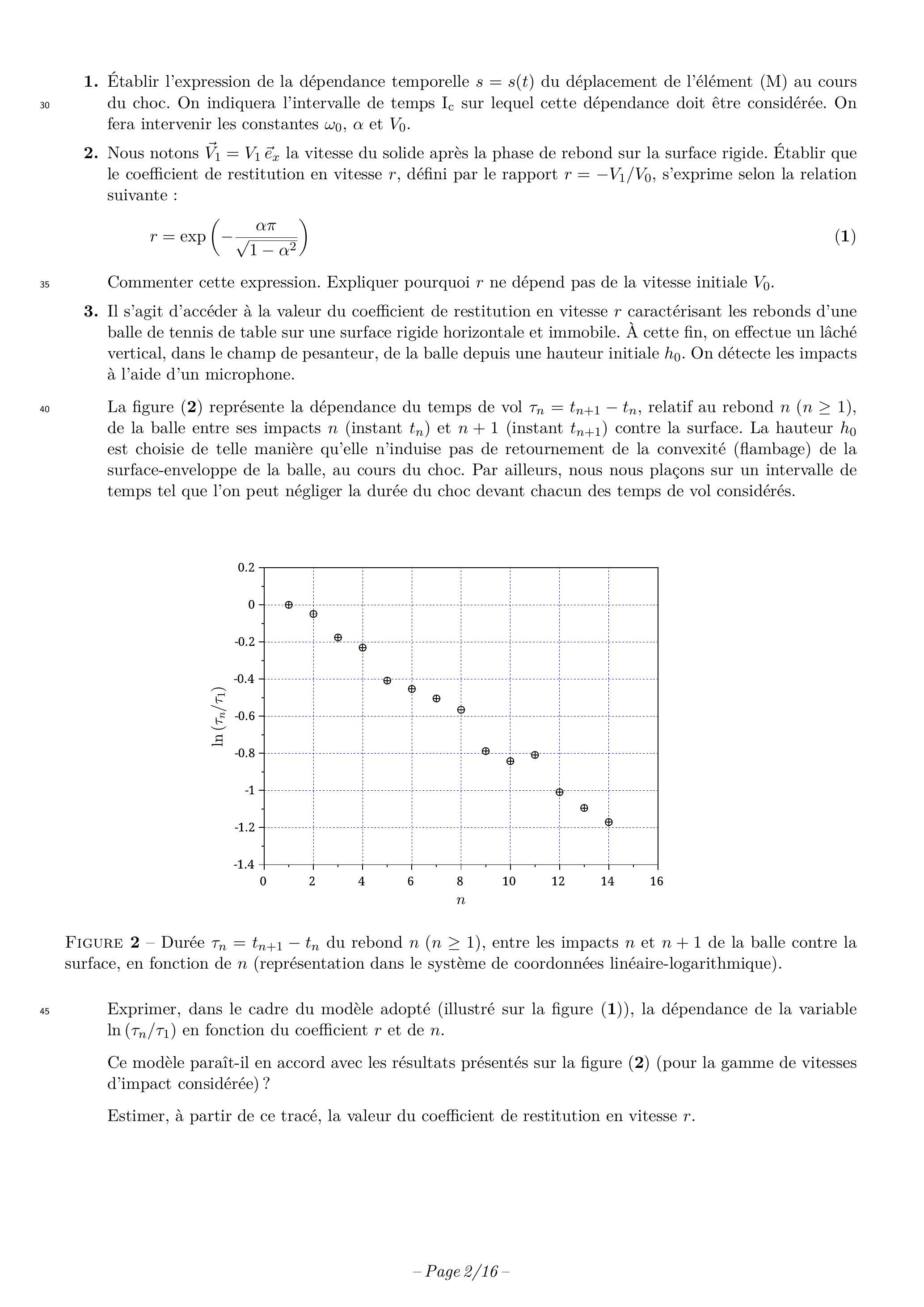 Estimer, à partir de ces données, la valeur du coefficient de restitution en vitesse . Afin de faciliter les calculs numériques, on tirera parti des indications suivantes : la valeur de est proche de l'unité et celle de proche de .