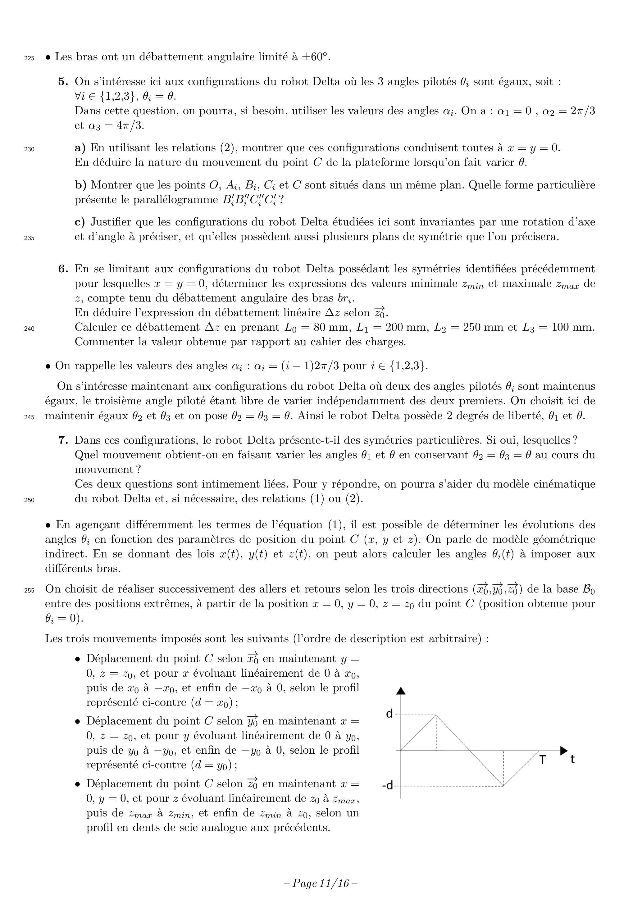 On associe, à la base 0 , le repère . Les points sont tels que , où sont des angles constants (à n'utiliser que sous forme littérale dans tout le sujet).