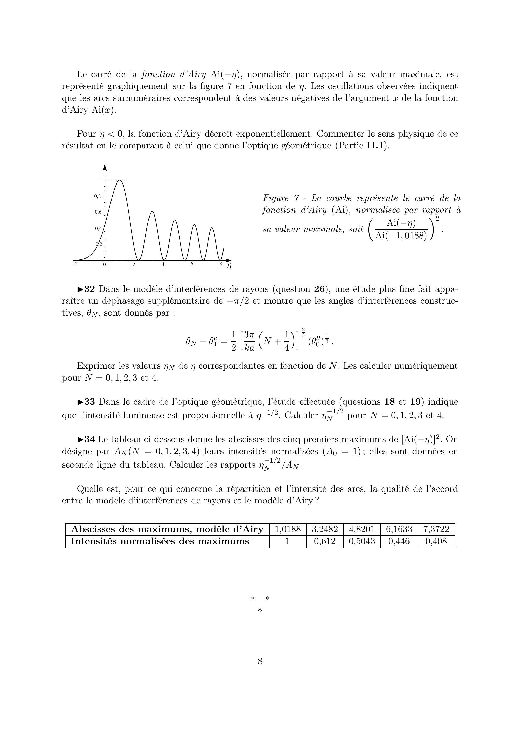 Pour , la fonction d'Airy décroît exponentiellement. Commenter le sens physique de ce résultat en le comparant à celui que donne l'optique géométrique (Partie II.1).