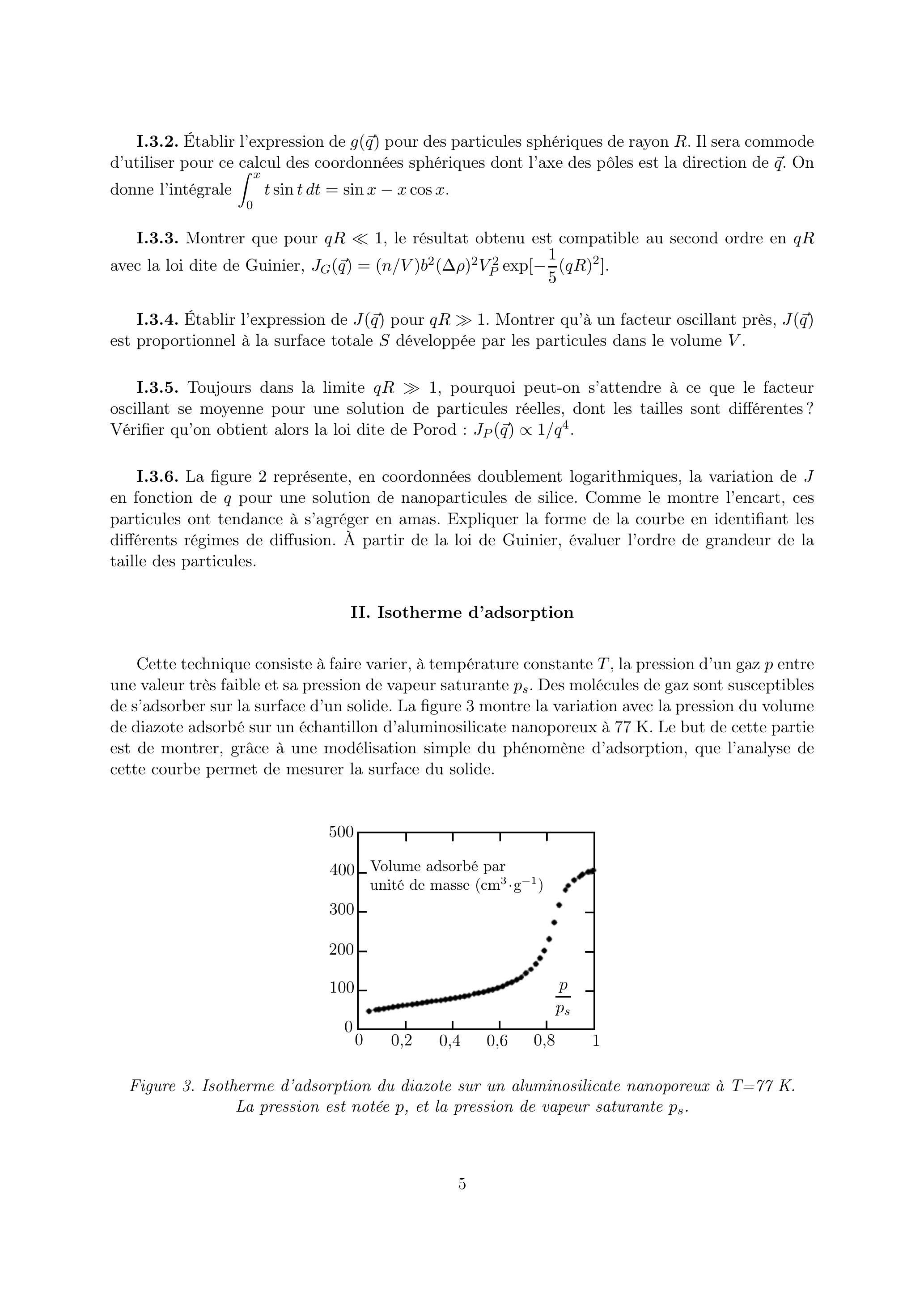 On s'intéresse dans ce problème à la caractérisation de particules et de pores de taille nanométrique ( ) par deux techniques différentes: la diffusion des rayons aux petits angles et l'adsorption gazeuse.