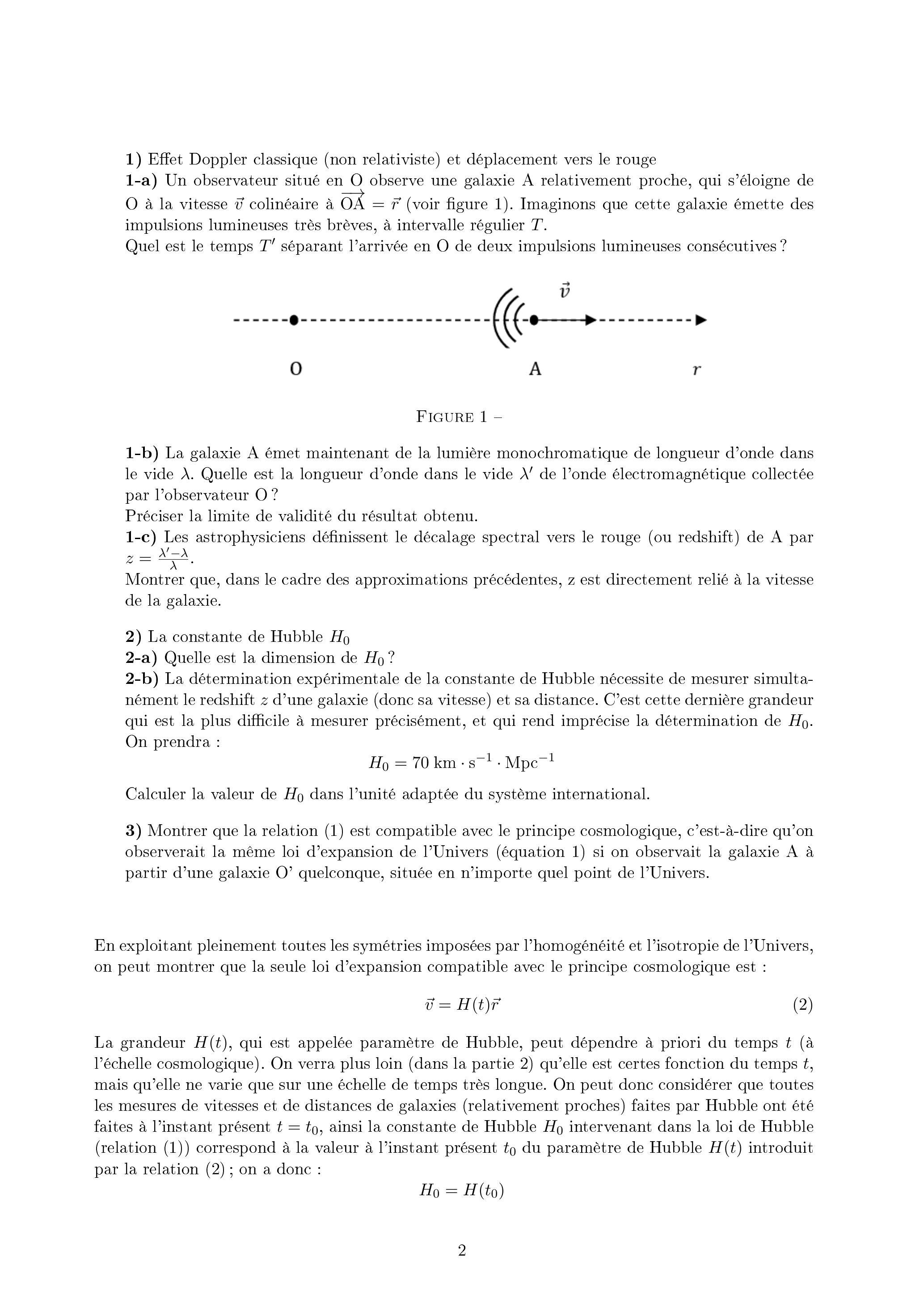 on se rend compte que pour mesurer , il faut s'intéresser à des objets très lointains, qui ont émis il y a très longtemps la lumière que nous recevons d'eux à l'heure actuelle (donc à l'instant présent ). Les questions suivantes sont destinées à comprendre plus précisément comment on parvient à mesurer ce paramètre .