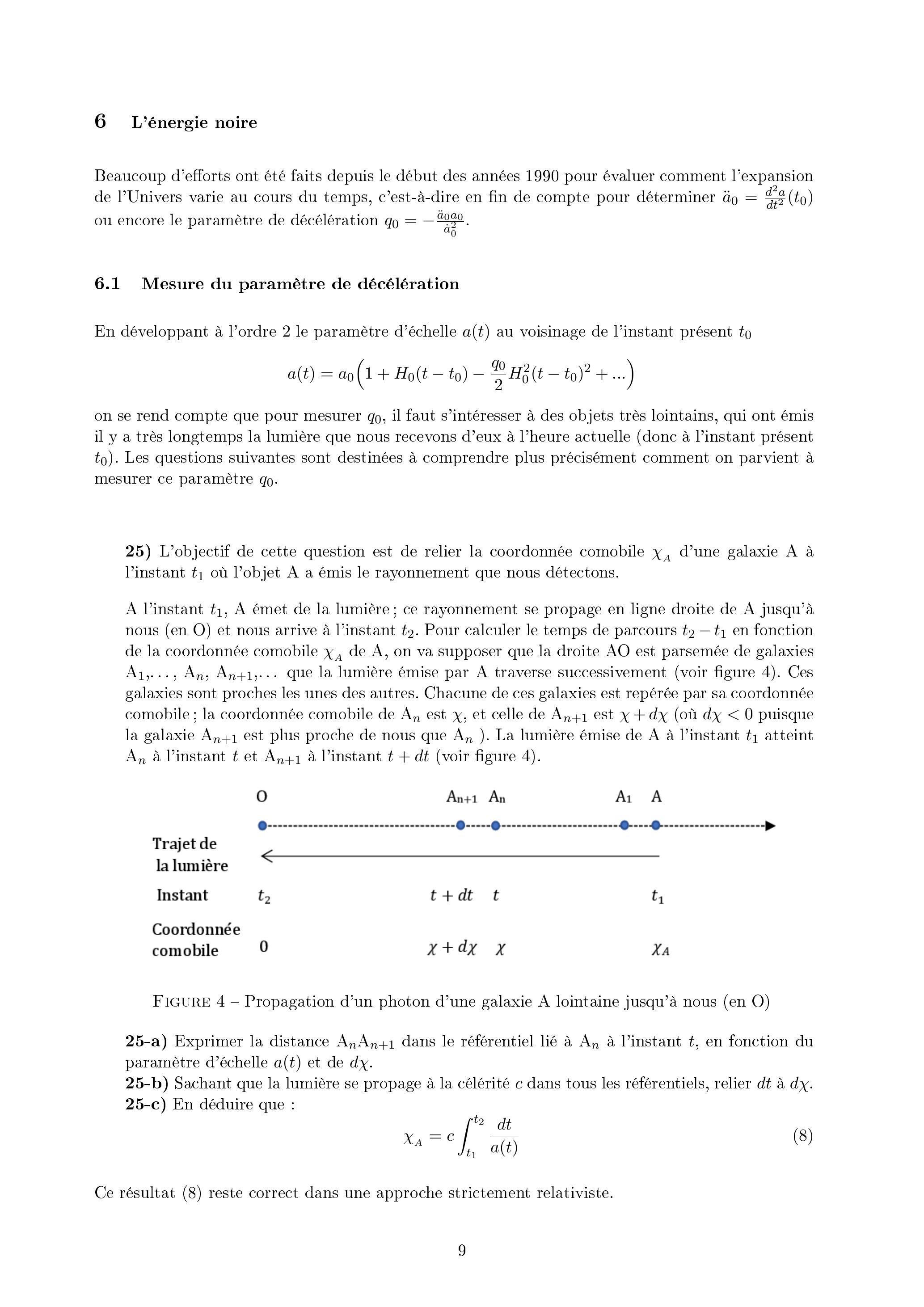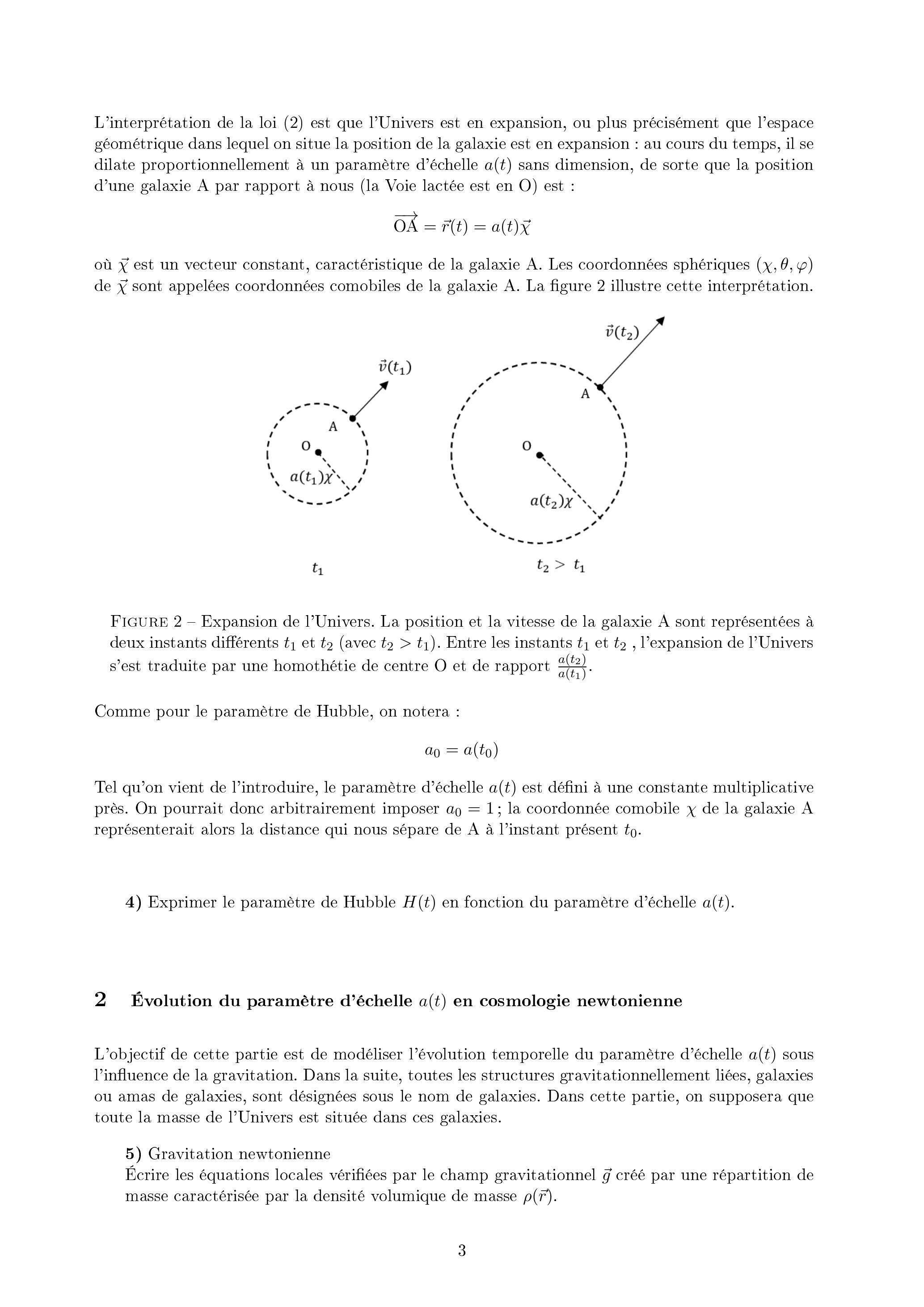 25-a) Exprimer la distance dans le référentiel lié à à l'instant , en fonction du paramètre d'échelle et de .