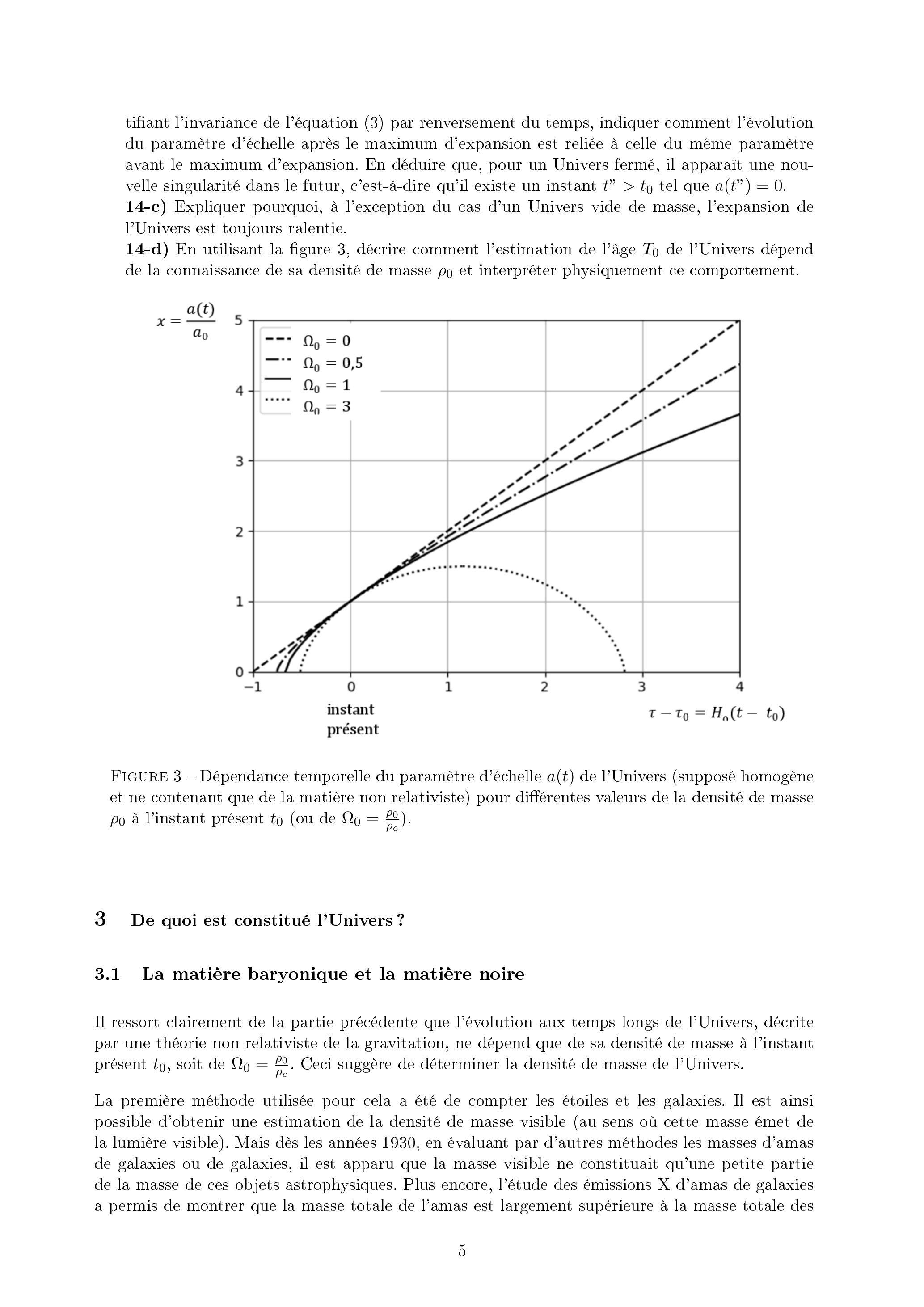 14-d) En utilisant la figure 3, décrire comment l'estimation de l'âge de l'Univers dépend de la connaissance de sa densité de masse et interpréter physiquement ce comportement.