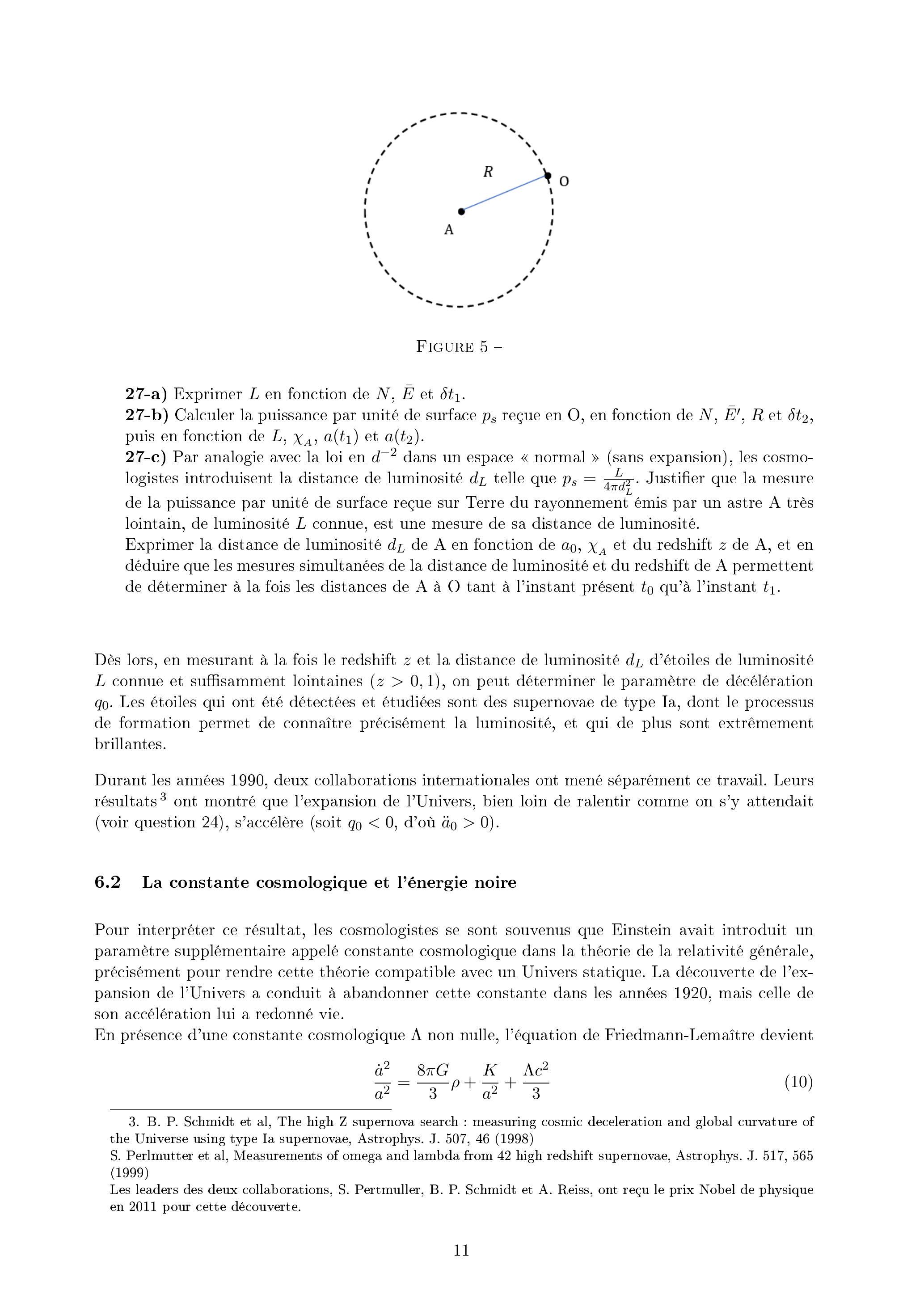 27) L'objectif de cette question est de déterminer la puissance par unité de surface du rayonnement reçu sur Terre (en O ) de la source A très lointaine, de luminosité connue, en tenant compte de l'expansion de l'Univers, qui est décrite par le paramètre d'échelle .