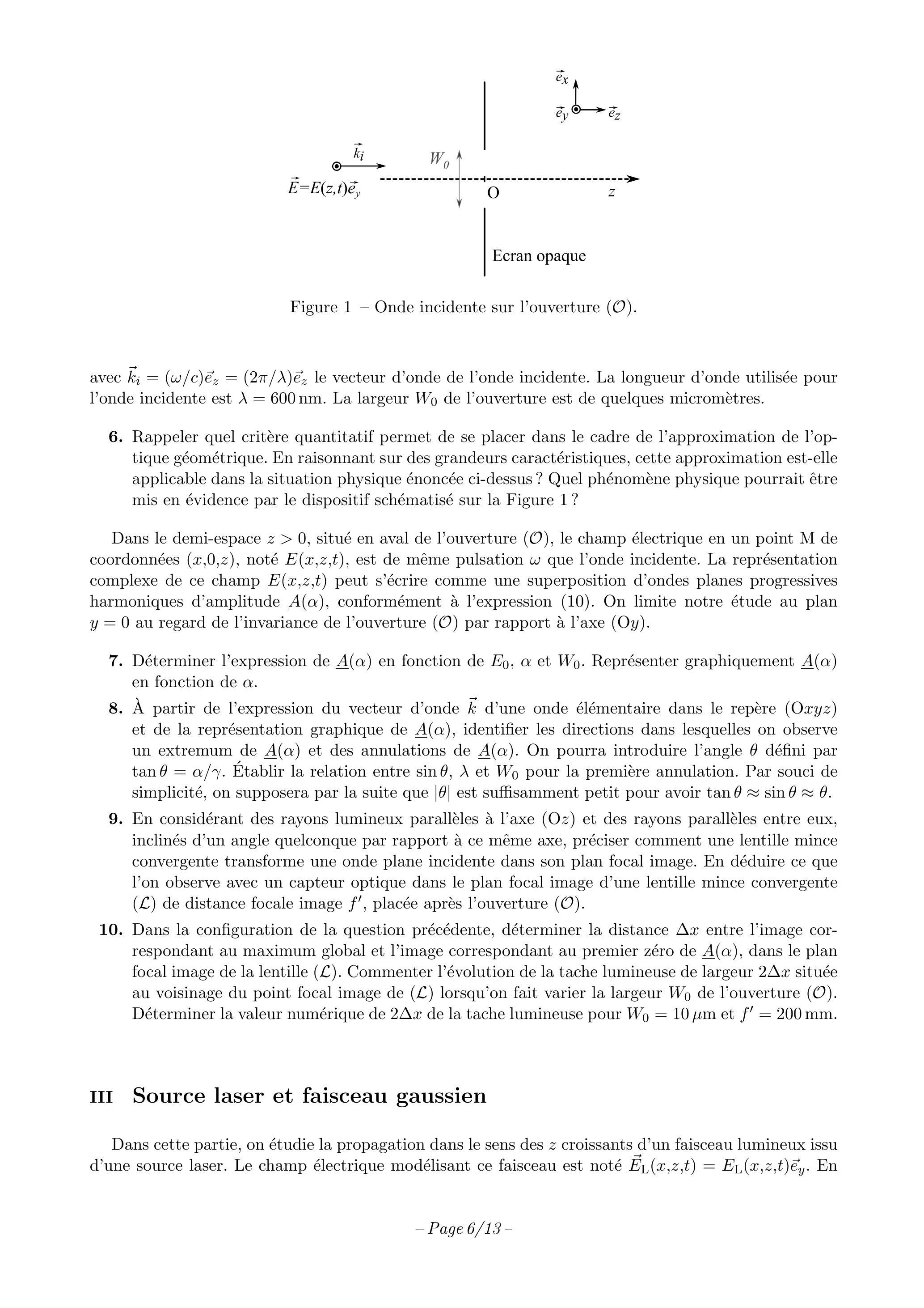 Dans cette partie, on étudie la propagation dans le sens des croissants d'un faisceau lumineux issu d'une source laser. Le champ électrique modélisant ce faisceau est noté . En