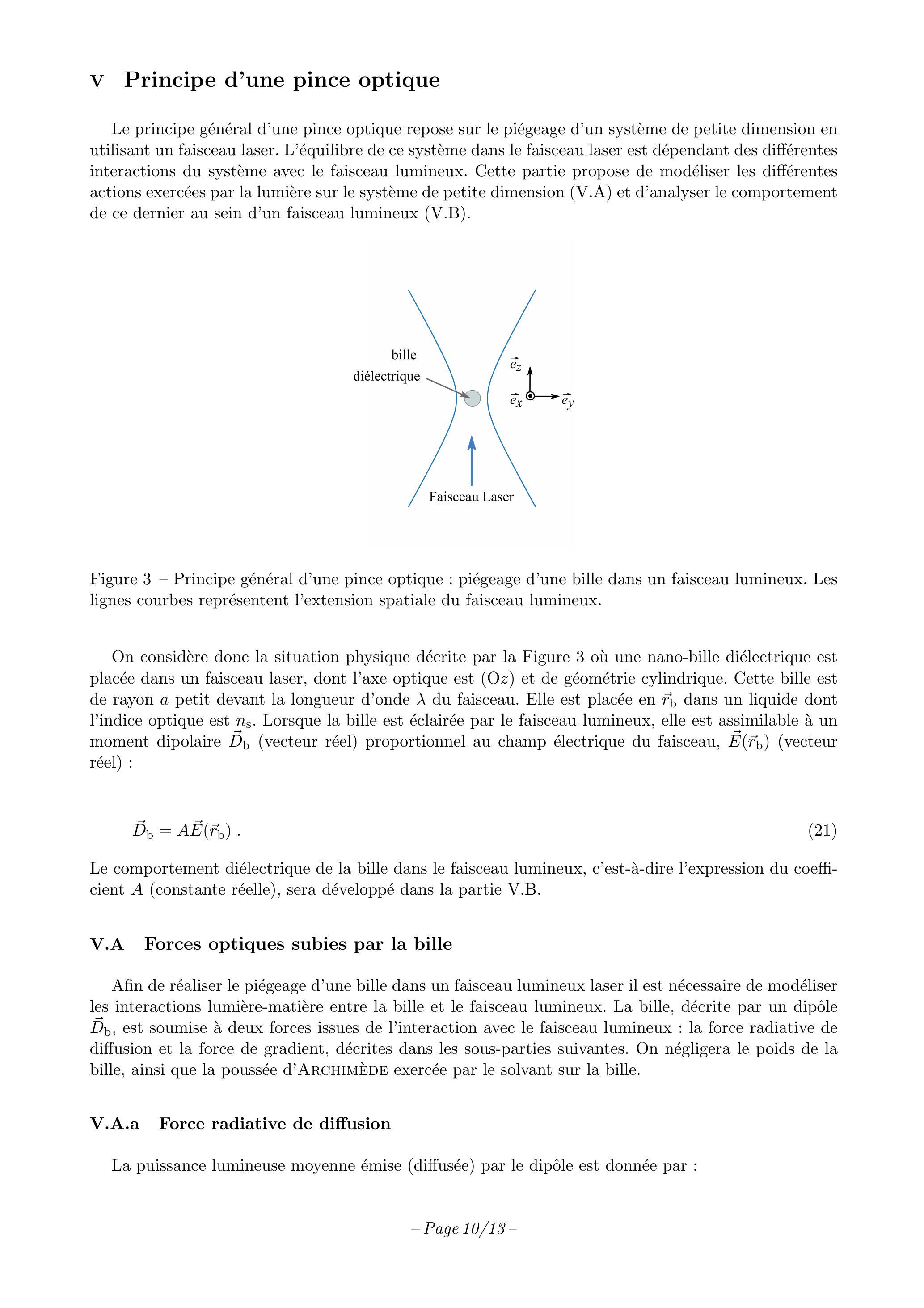 Le comportement diélectrique de la bille dans le faisceau lumineux, c'est-à-dire l'expression du coefficient (constante réelle), sera développé dans la partie V.B.