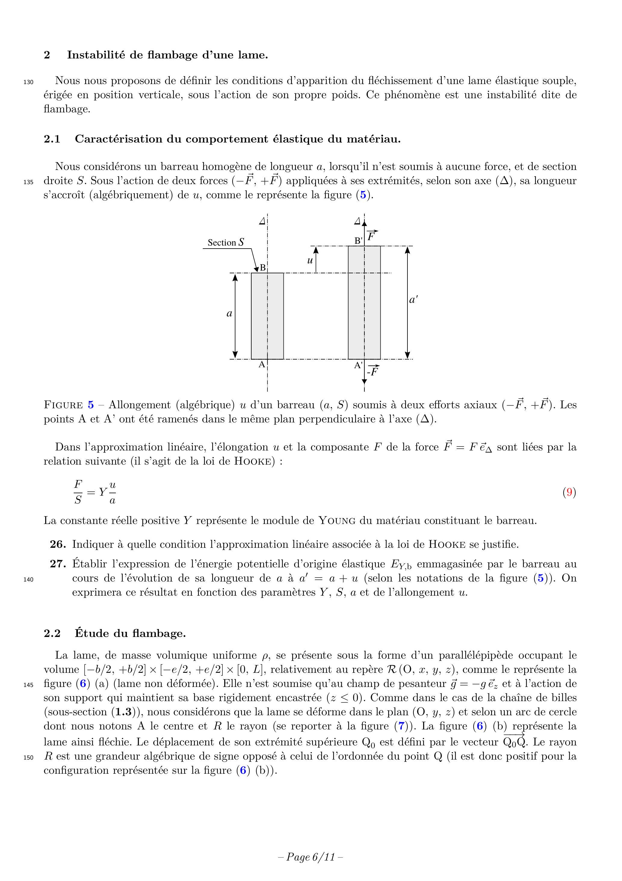 31. Déduire des calculs qui précèdent que la longueur critique de la lame, au-delà de laquelle sa configuration de référence devient instable, peut s'exprimer sous la forme suivante :