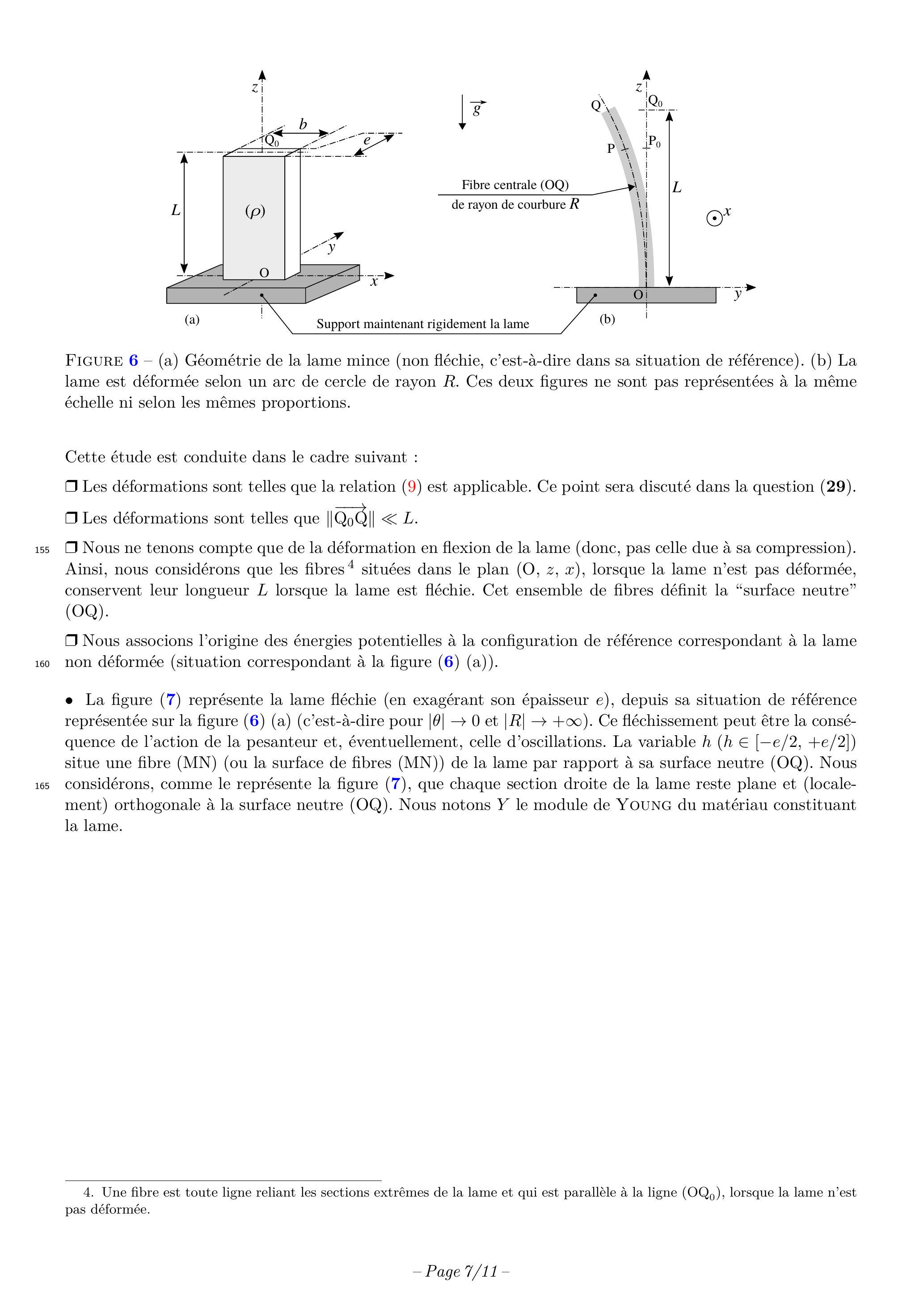 37. Exprimer la pulsation des oscillations de la lame autour de sa situation de référence. On exprimera ce résultat en fonction des paramètres et du rapport où est la longueur critique introduite dans la question (31). Analyser ce résultat.
