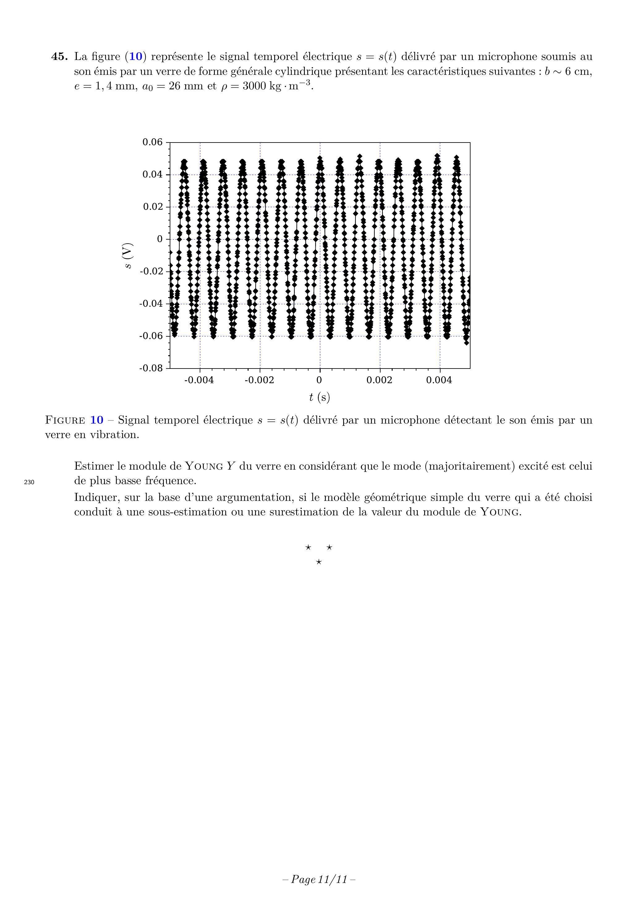 45. La figure (10) représente le signal temporel électrique délivré par un microphone soumis au son émis par un verre de forme générale cylindrique présentant les caractéristiques suivantes : , et .