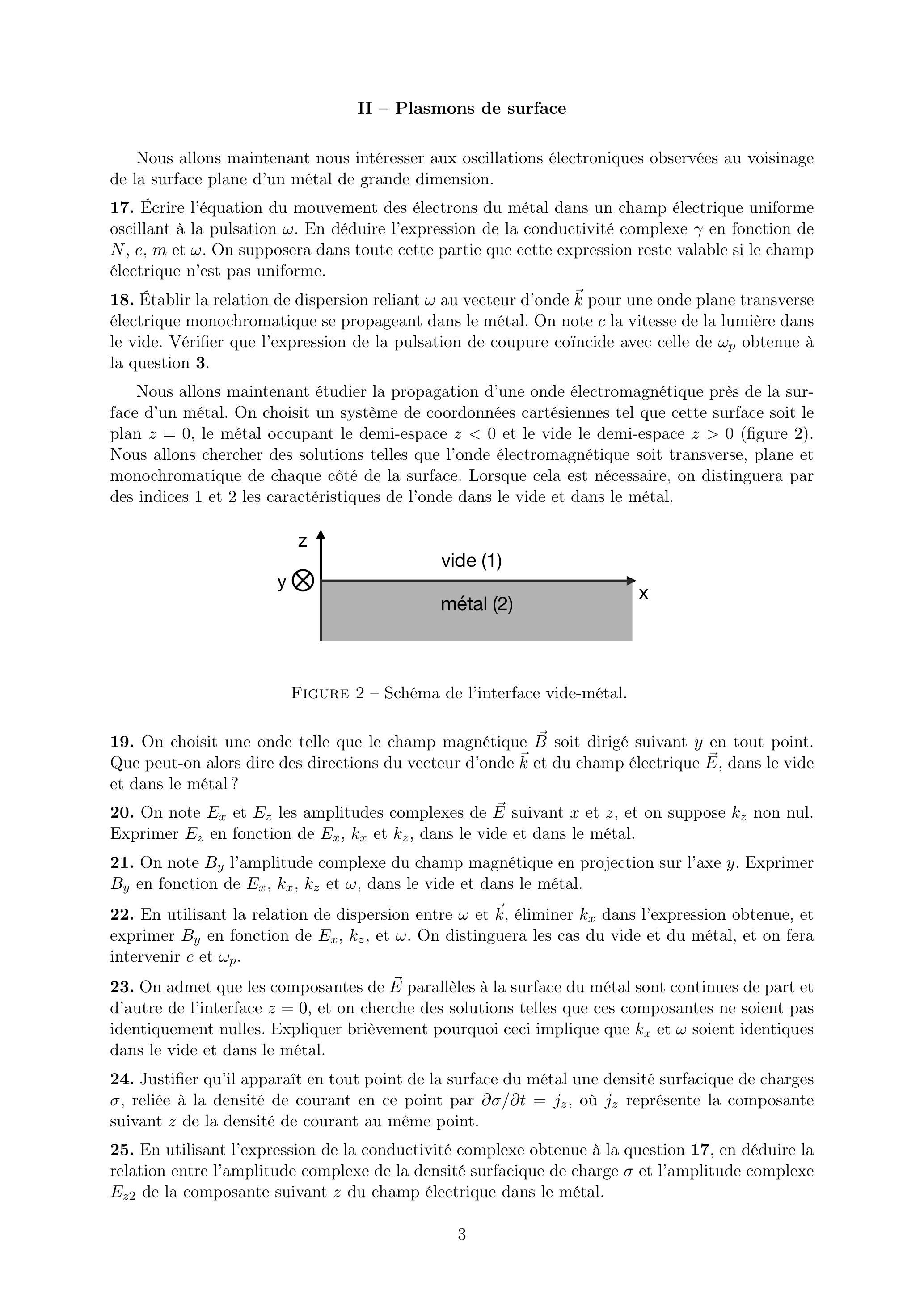 et , éliminer dans l'expression obtenue, et exprimer en fonction de , et . On distinguera les cas du vide et du métal, et on fera intervenir et . - On admet que les composantes de