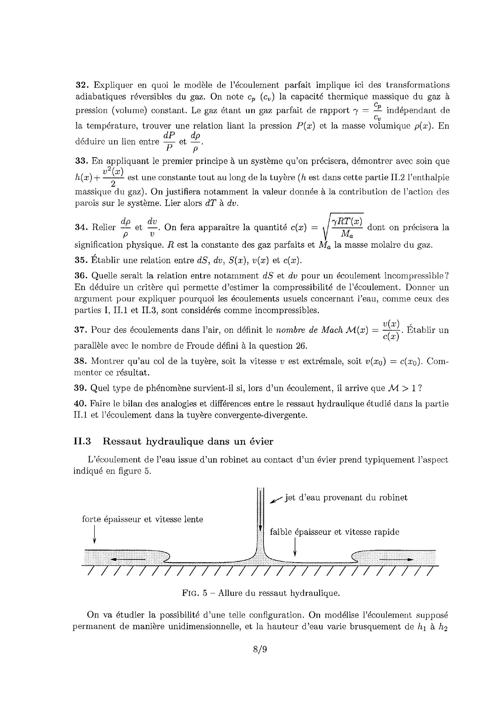 37. Pour des écoulements dans l'air, on définit le nombre de Mach . Établir un parallèle avec le nombre de Froude défini à la question 26 .