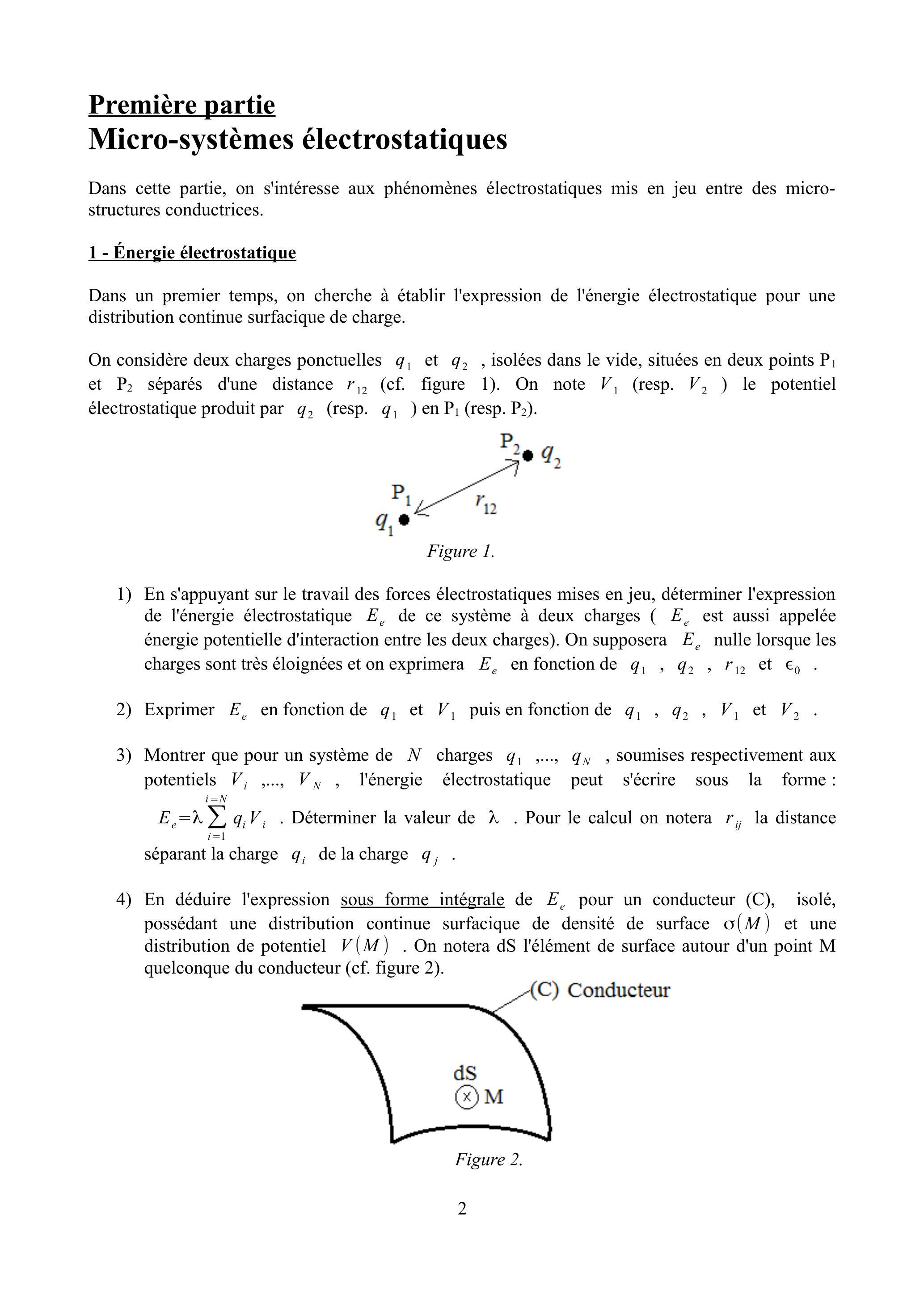 Dans cette partie, on s'intéresse aux phénomènes électrostatiques mis en jeu entre des microstructures conductrices.