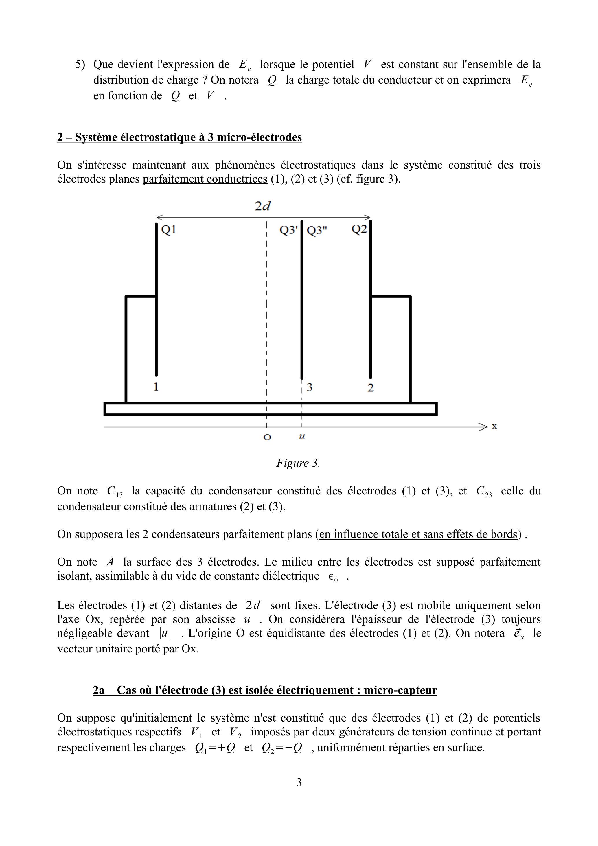 On note la capacité du condensateur constitué des électrodes (1) et (3), et celle du condensateur constitué des armatures (2) et (3).