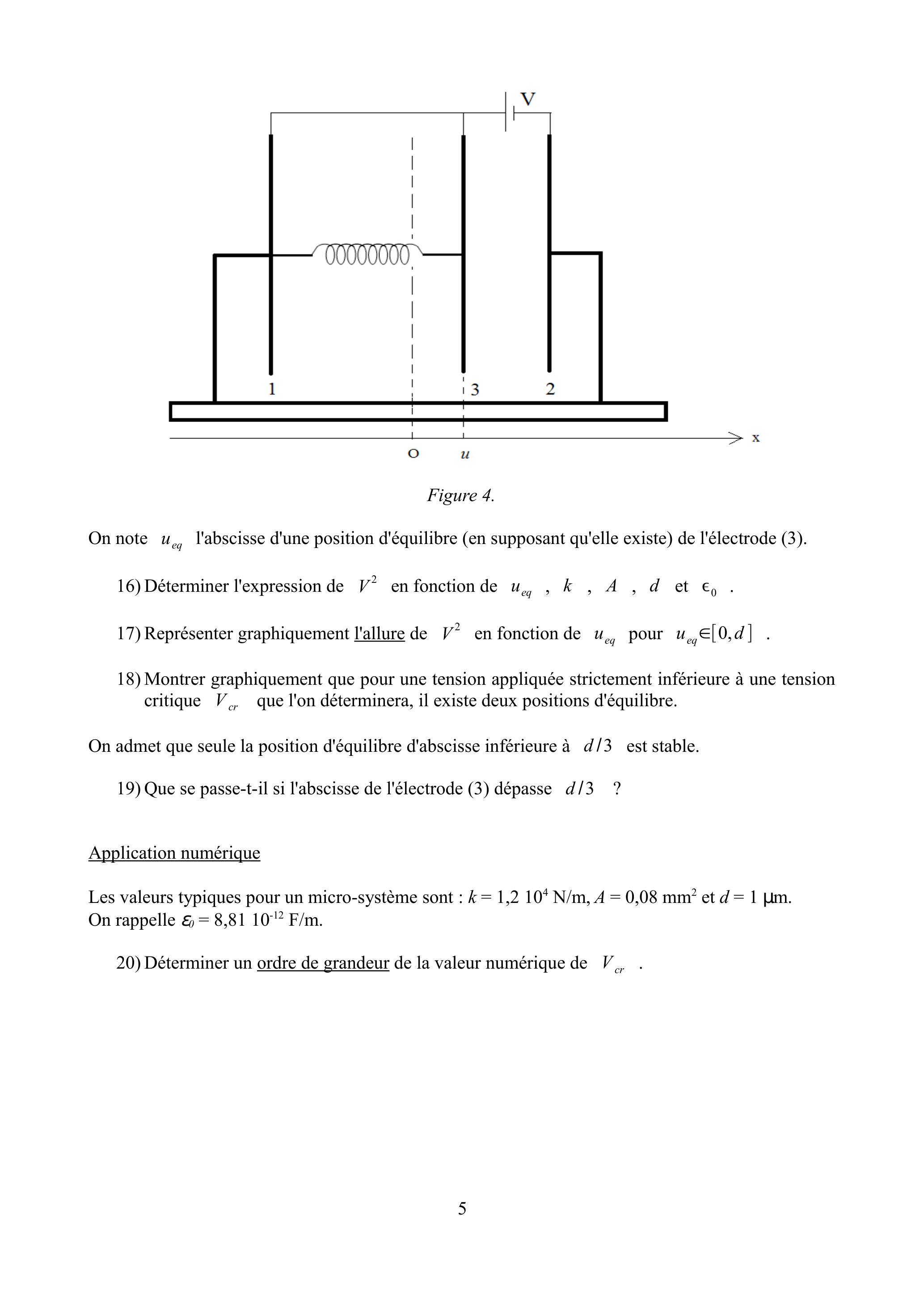 15) A partir de calculée précédemment, déterminer l'expression de la force électrostatique s'appliquant sur l'électrode (3), en fonction de et puis en fonction de et .