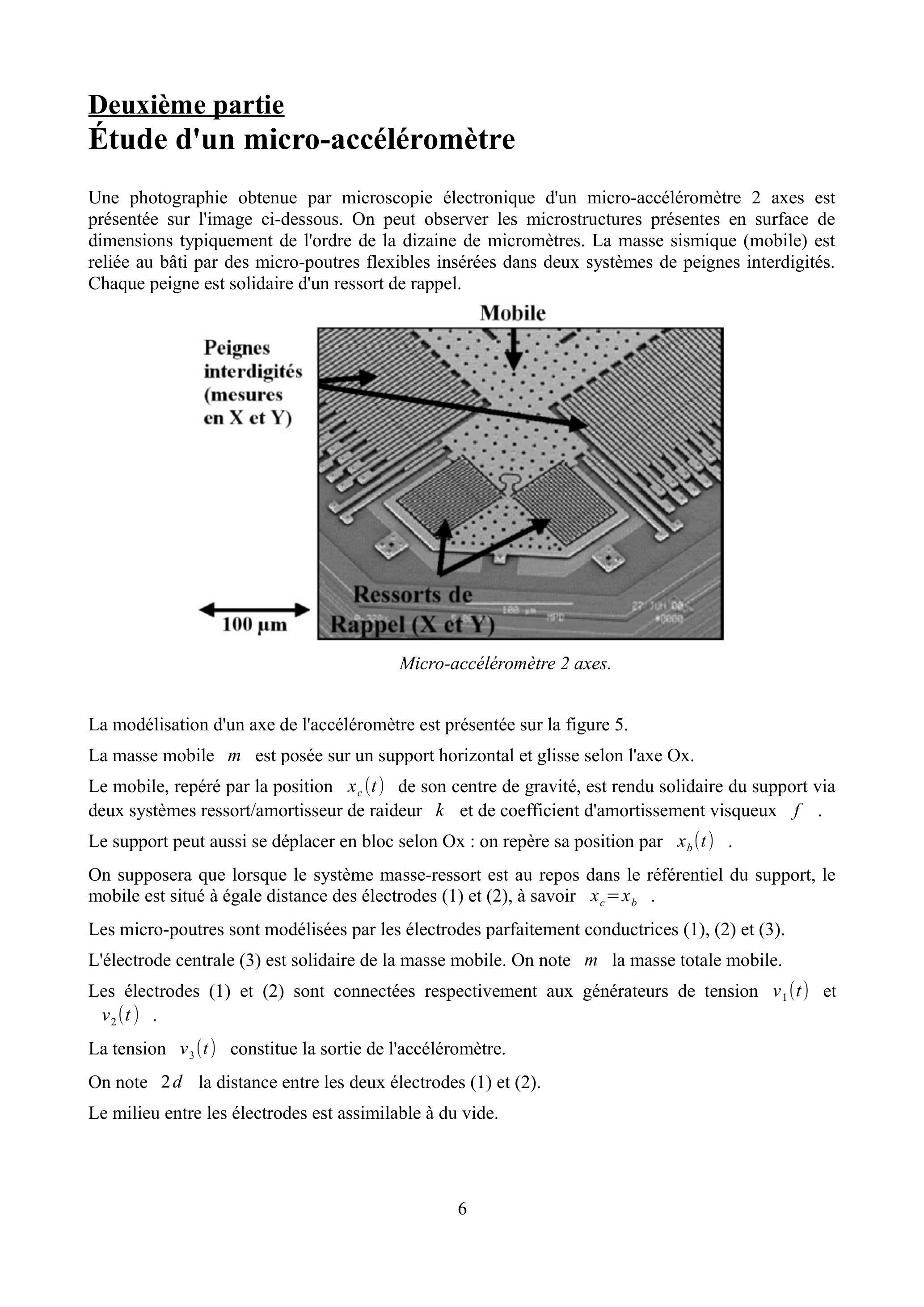 Le sujet traite de la physique de micro-systèmes électromécaniques et optiques à travers l'étude plus spécifique de deux composants : un micro-accéléromètre et un micro-réseau optique modulable.