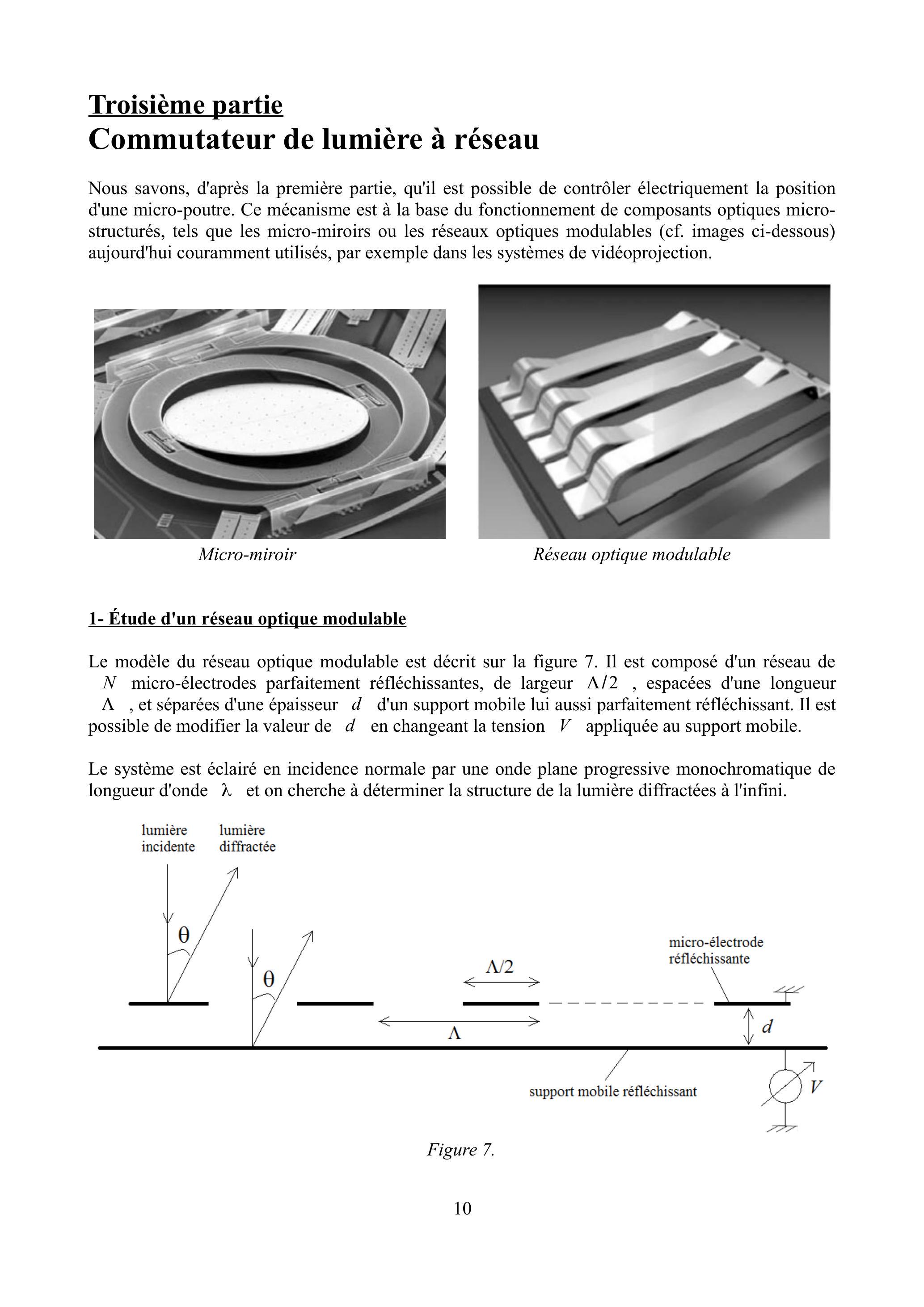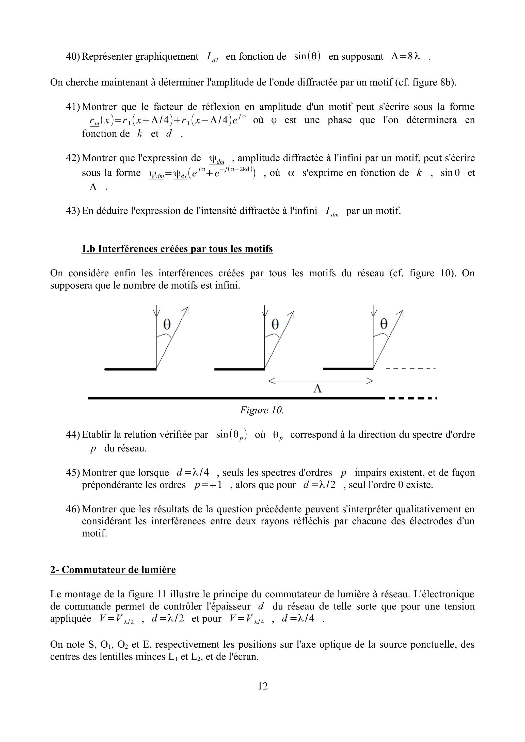 Le montage de la figure 11 illustre le principe du commutateur de lumière à réseau. L'électronique de commande permet de contrôler l'épaisseur du réseau de telle sorte que pour une tension appliquée et pour .