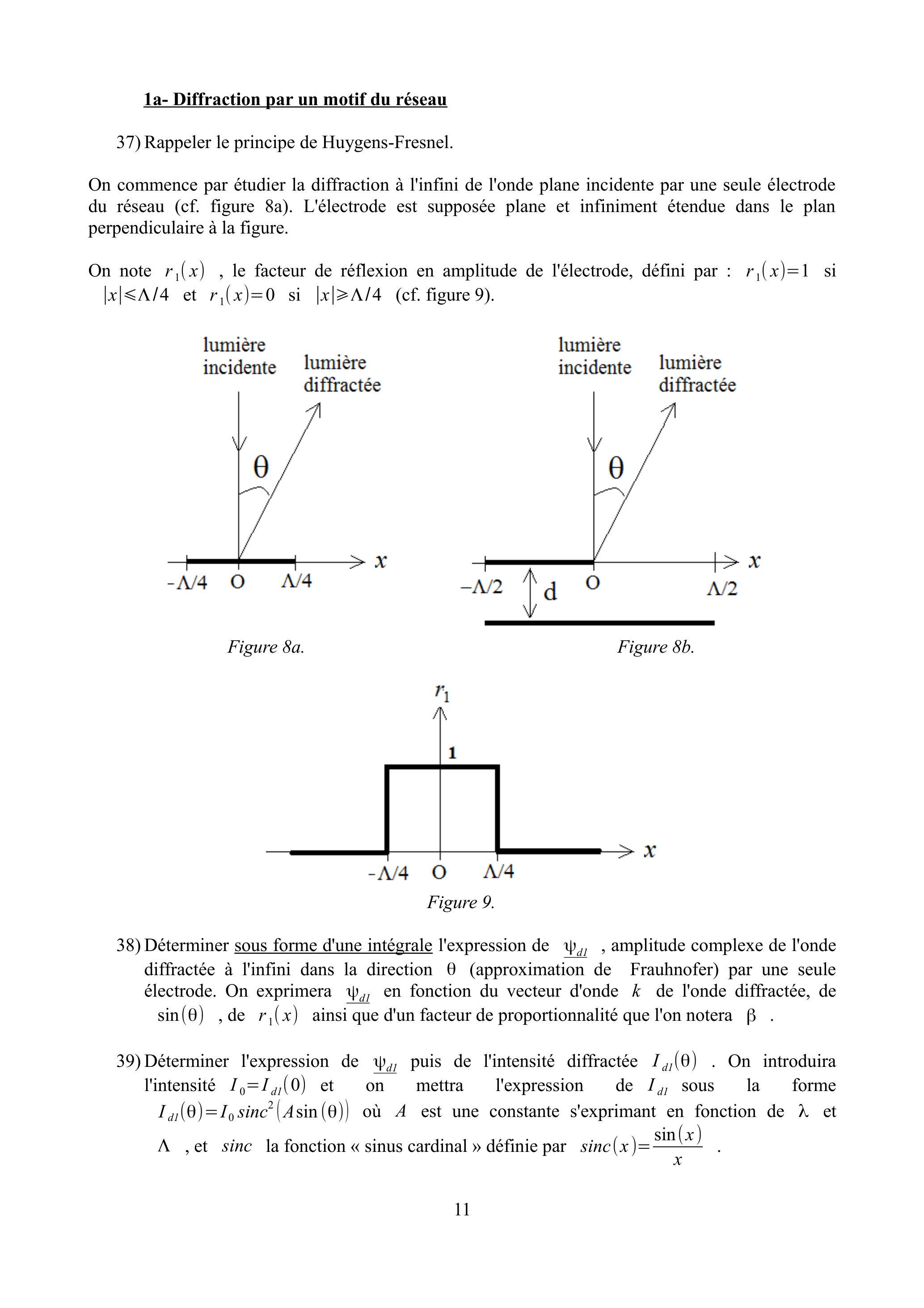 41) Montrer que le facteur de réflexion en amplitude d'un motif peut s'écrire sous la forme où est une phase que l'on déterminera en fonction de et .