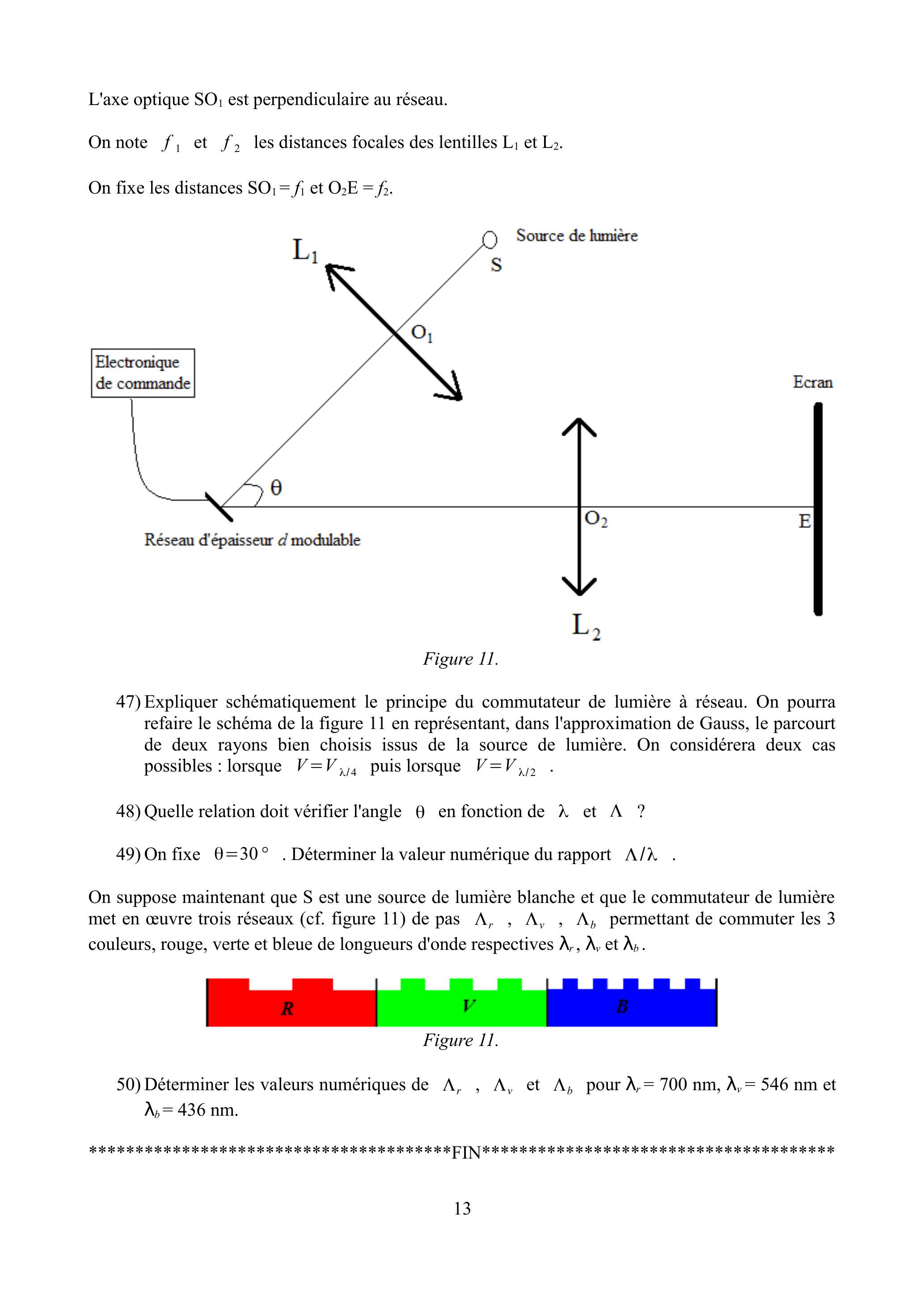 Expliquer schématiquement le principe du commutateur de lumière à réseau. On pourra refaire le schéma de la figure 11 en représentant, dans l'approximation de Gauss, le parcourt de deux rayons bien choisis issus de la source de lumière. On considérera deux cas possibles : lorsque puis lorsque .