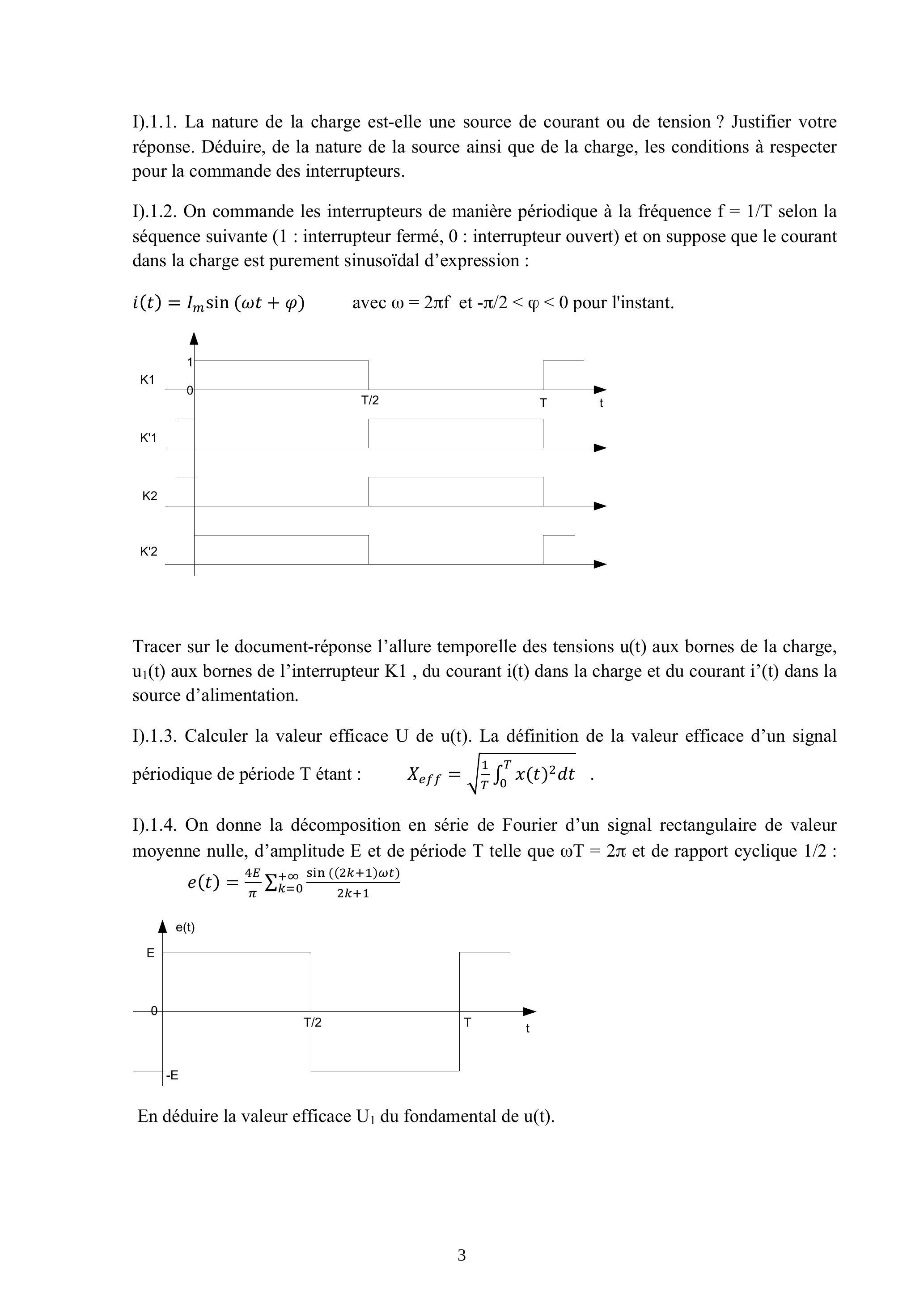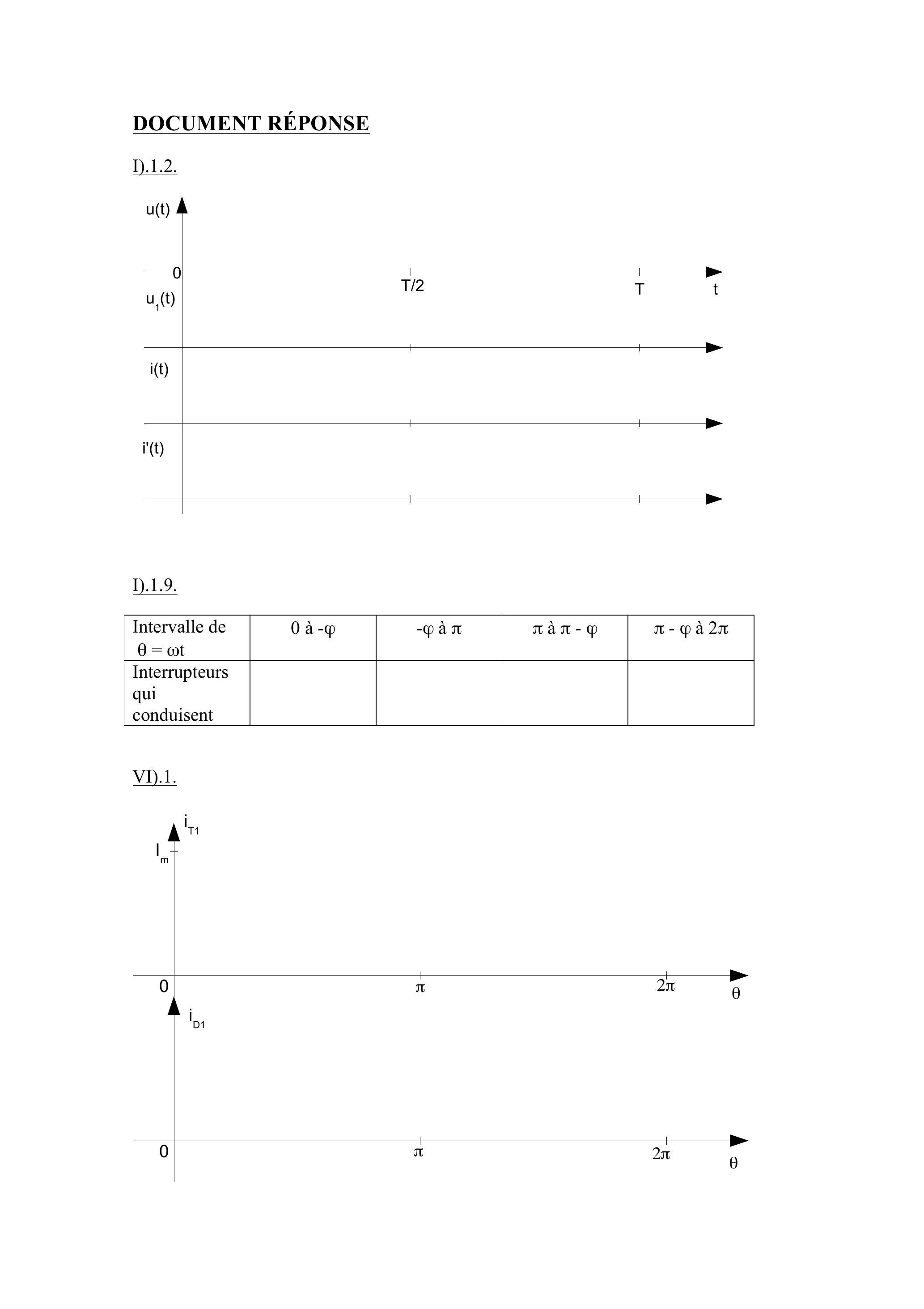 VI).1. On considère que l'interrupteur K1 (ou K'2) conduit pendant une demi-période, c'est à dire de à et que le courant dans la charge vaut: