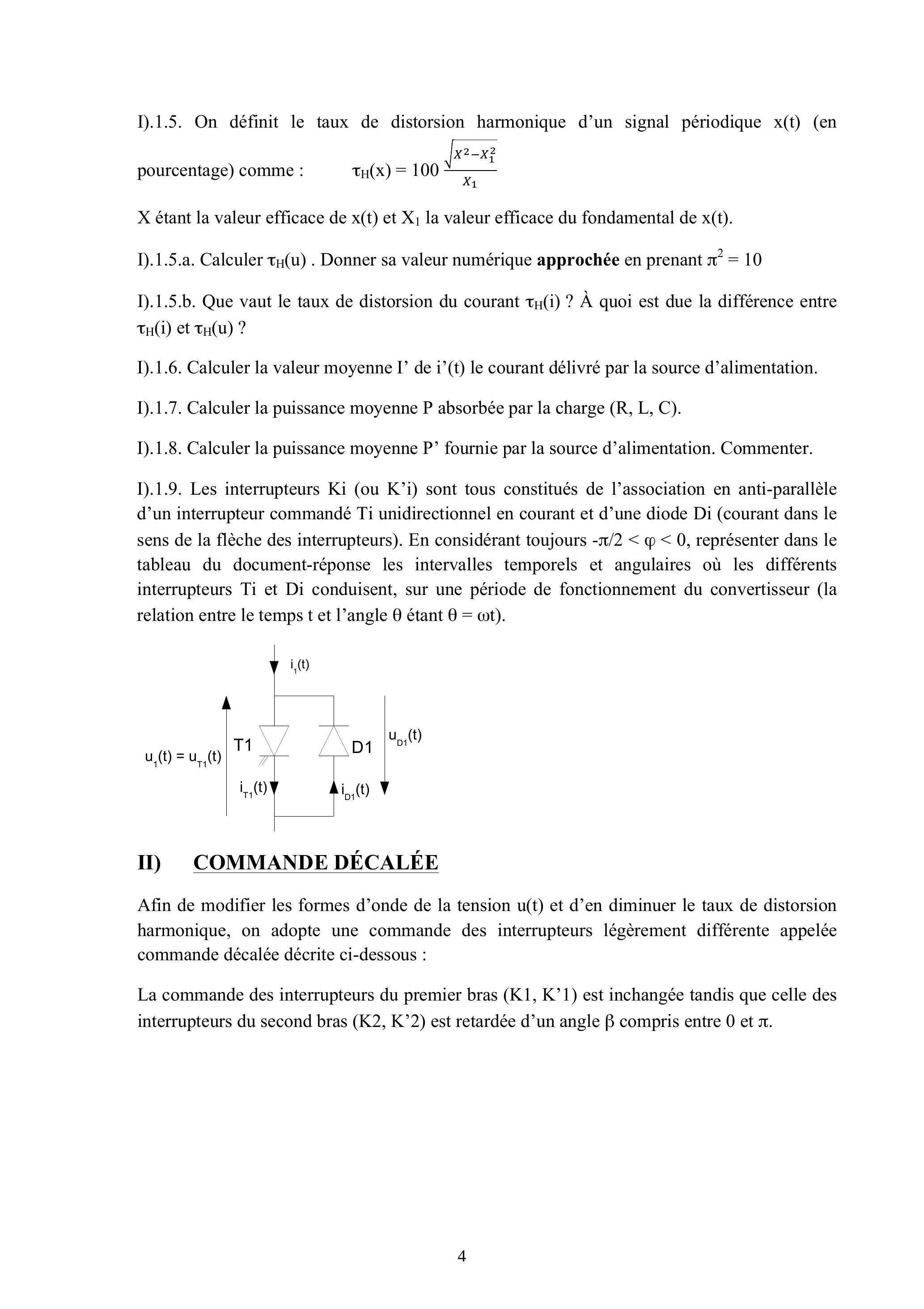 En déduire la valeur du taux de distorsion harmonique pour la commande décalée en fonction de