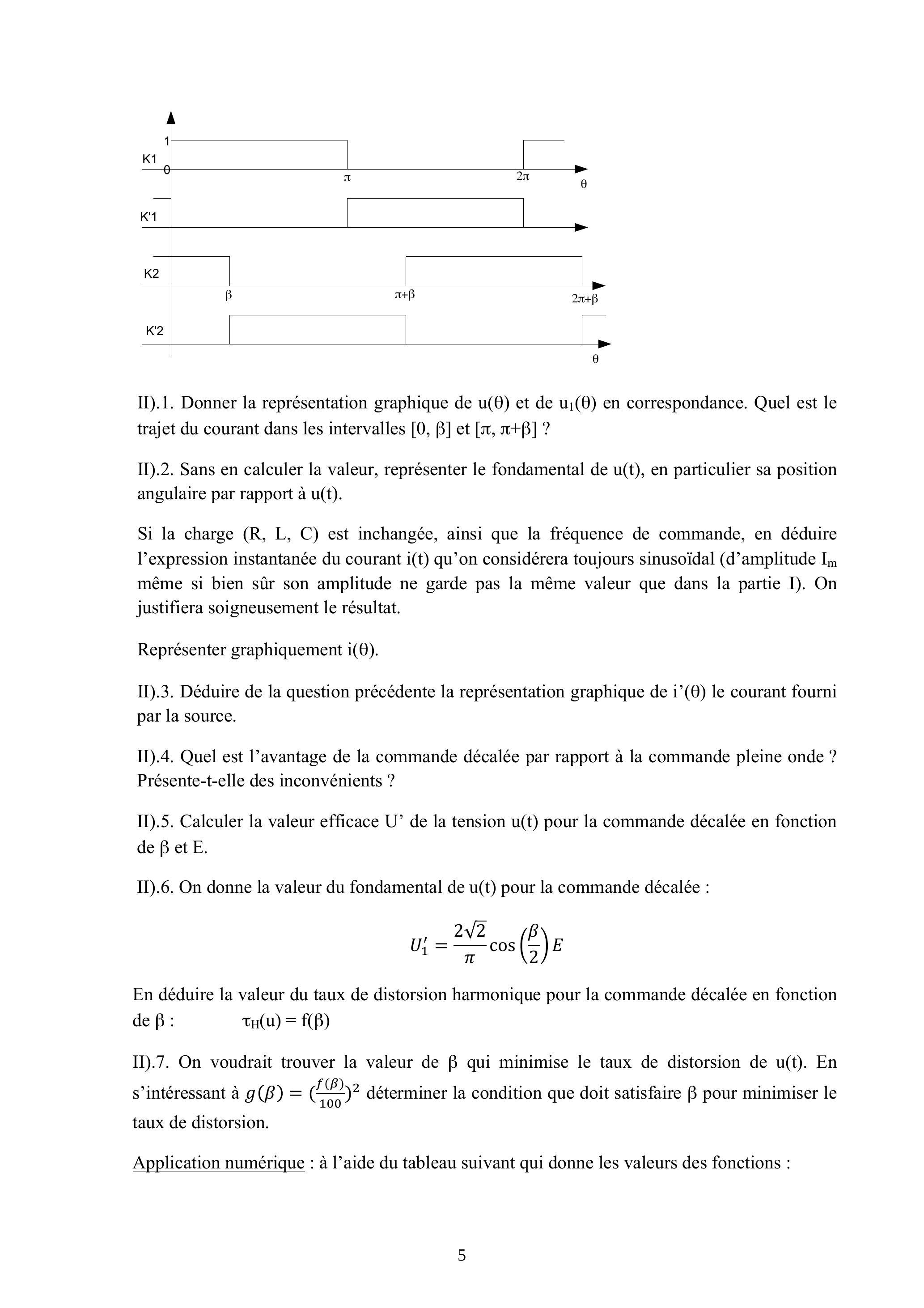 II).5. Calculer la valeur efficace U' de la tension pour la commande décalée en fonction de et E.