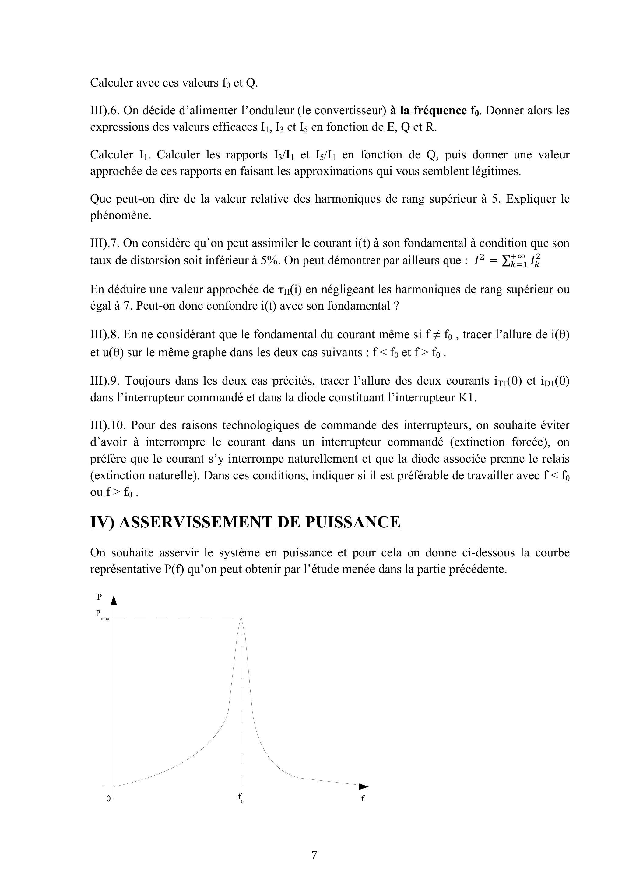 III).7. On considère qu'on peut assimiler le courant à son fondamental à condition que son taux de distorsion soit inférieur à . On peut démontrer par ailleurs que :