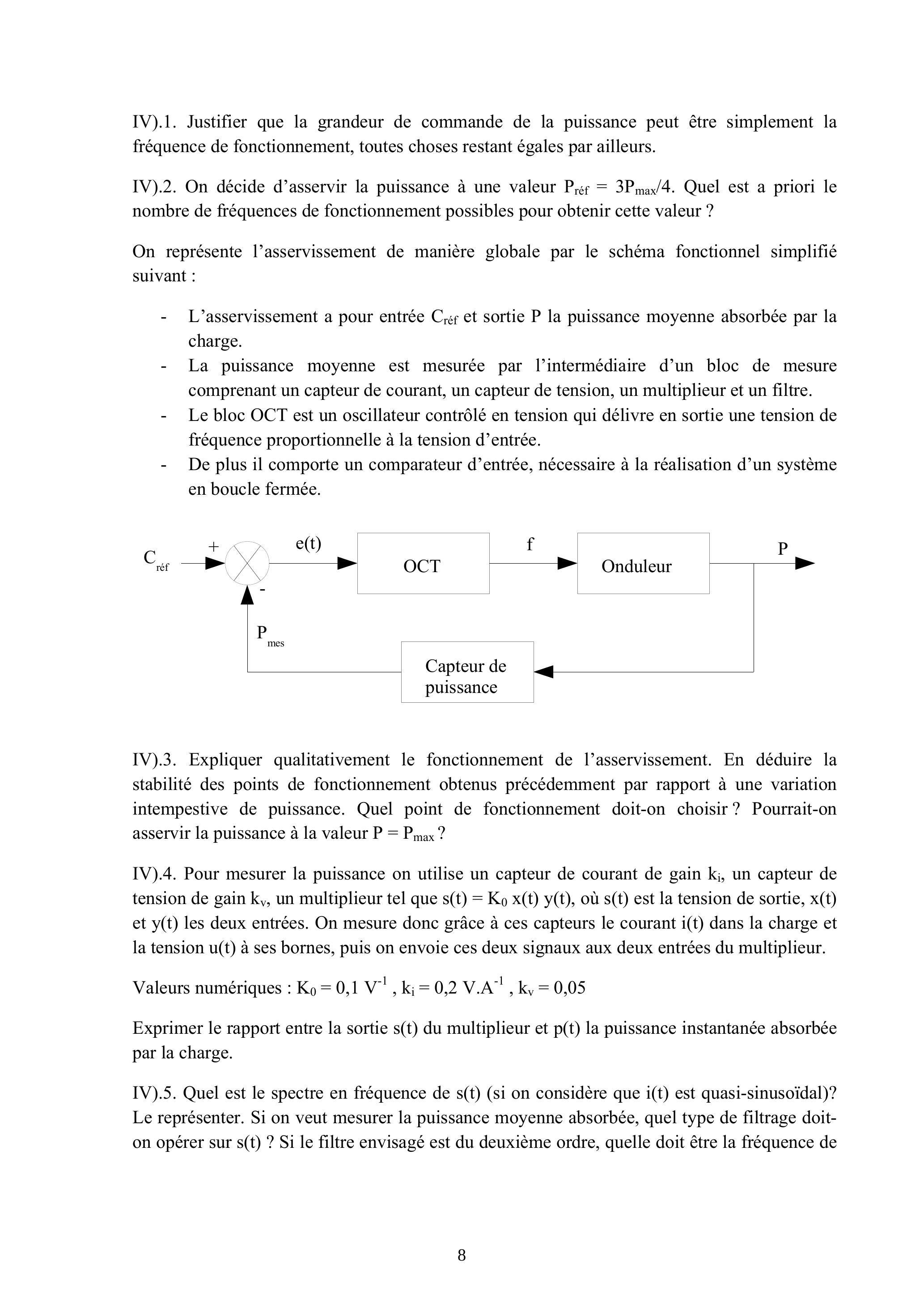 IV).2. On décide d'asservir la puissance à une valeur . Quel est a priori le nombre de fréquences de fonctionnement possibles pour obtenir cette valeur?