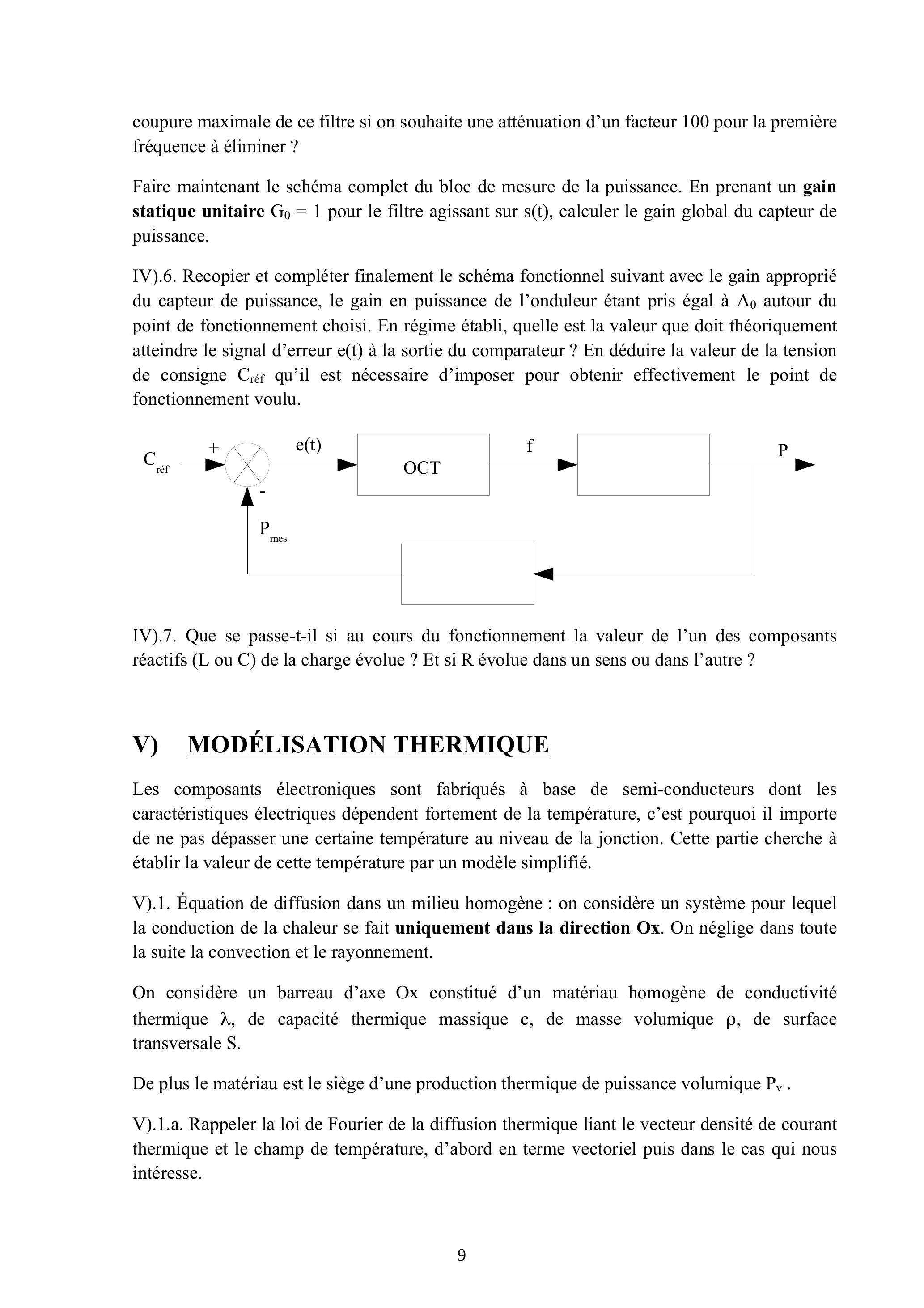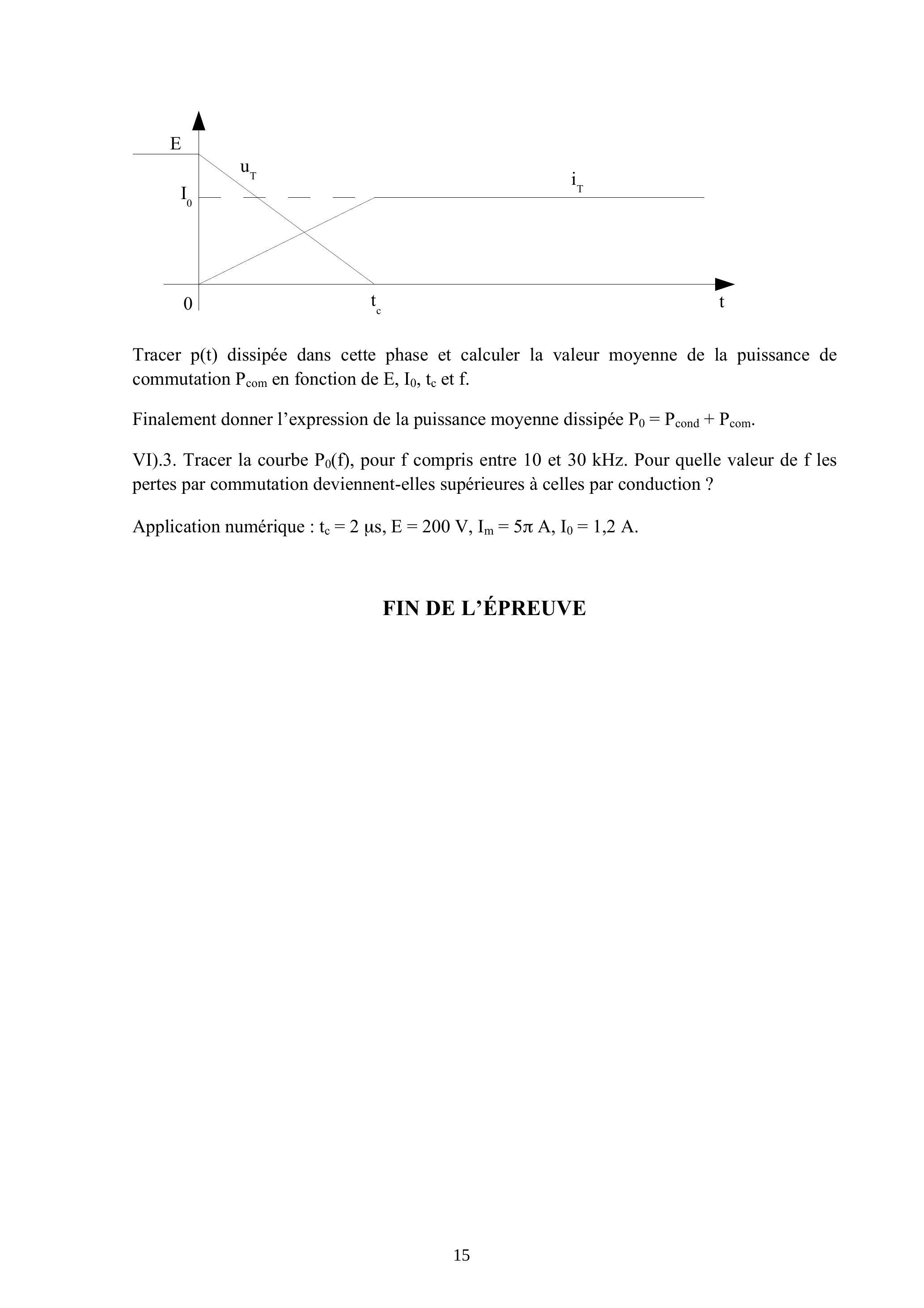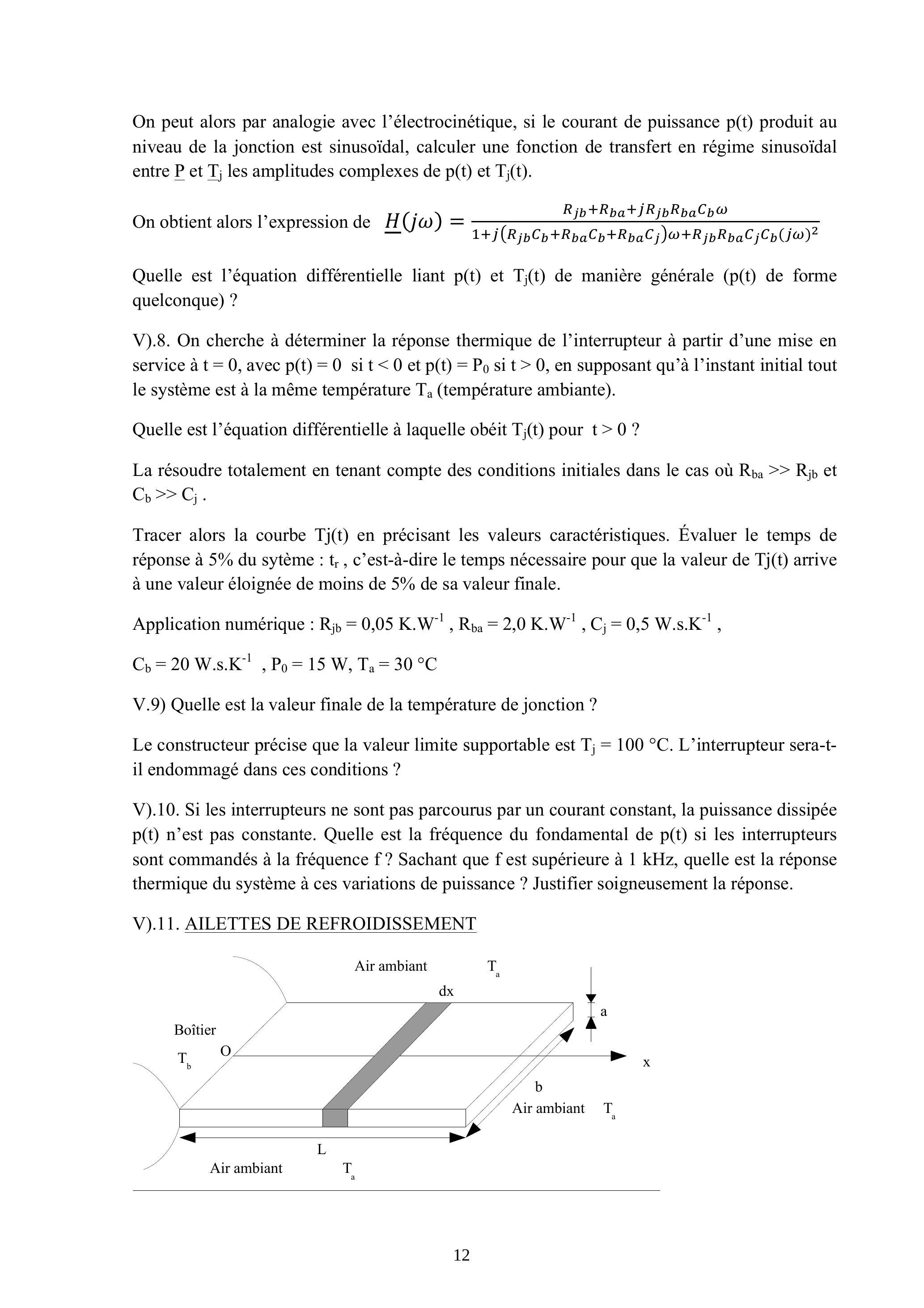 V).10. Si les interrupteurs ne sont pas parcourus par un courant constant, la puissance dissipée n'est pas constante. Quelle est la fréquence du fondamental de si les interrupteurs sont commandés à la fréquence f ? Sachant que f est supérieure à 1 kHz , quelle est la réponse thermique du système à ces variations de puissance ? Justifier soigneusement la réponse.