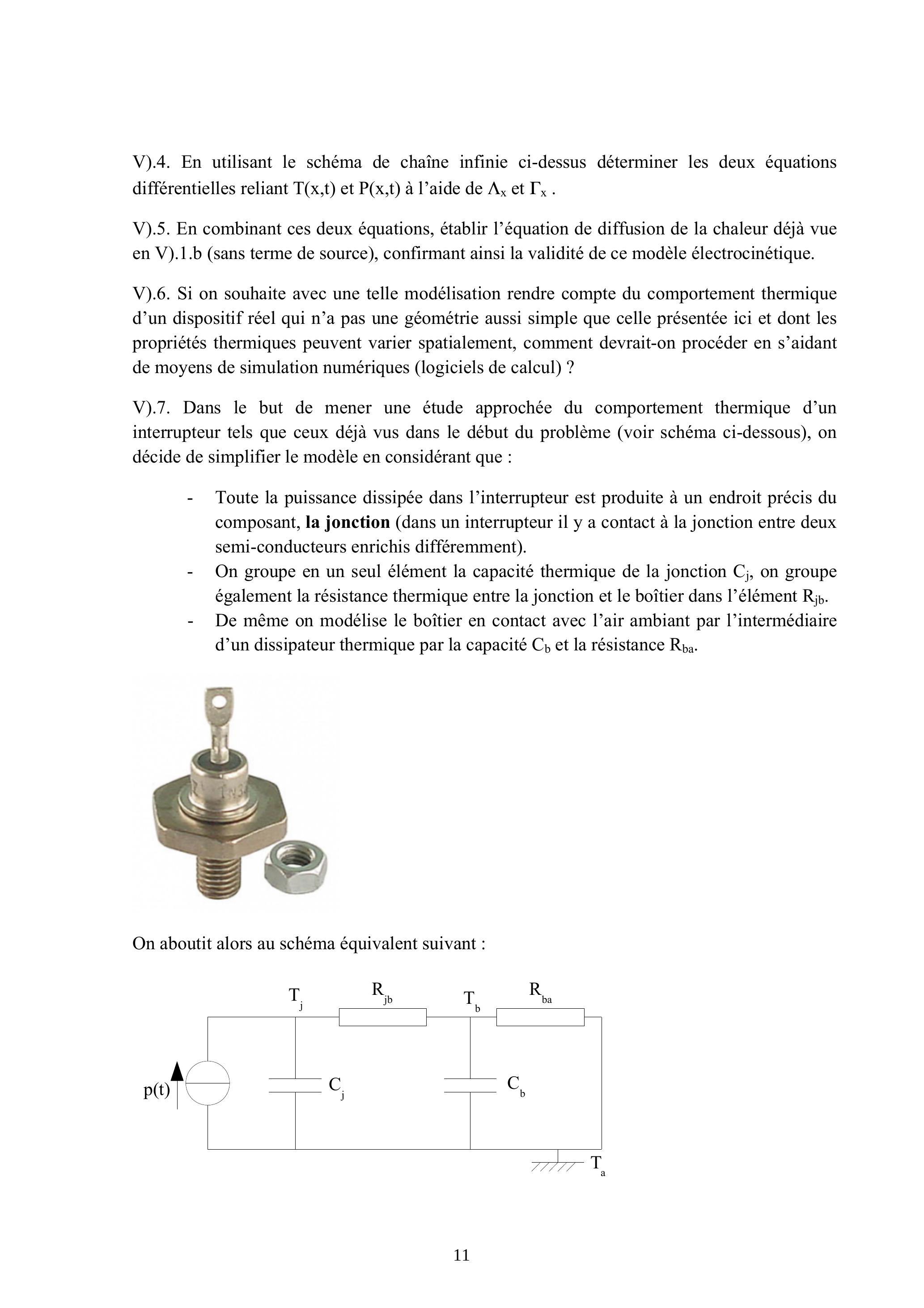 V).7. Dans le but de mener une étude approchée du comportement thermique d'un interrupteur tels que ceux déjà vus dans le début du problème (voir schéma ci-dessous), on décide de simplifier le modèle en considérant que :