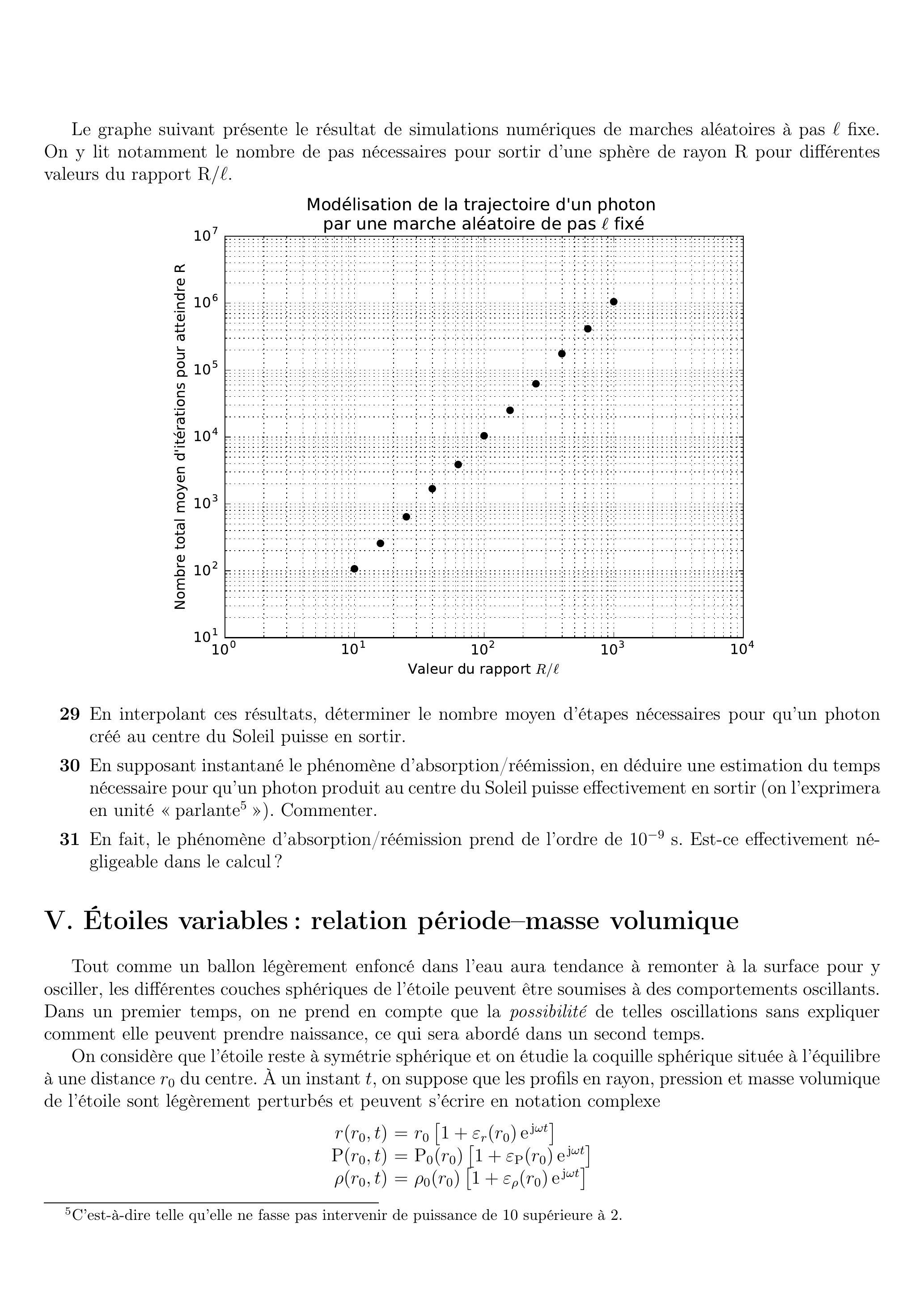 29 En interpolant ces résultats, déterminer le nombre moyen d'étapes nécessaires pour qu'un photon créé au centre du Soleil puisse en sortir.