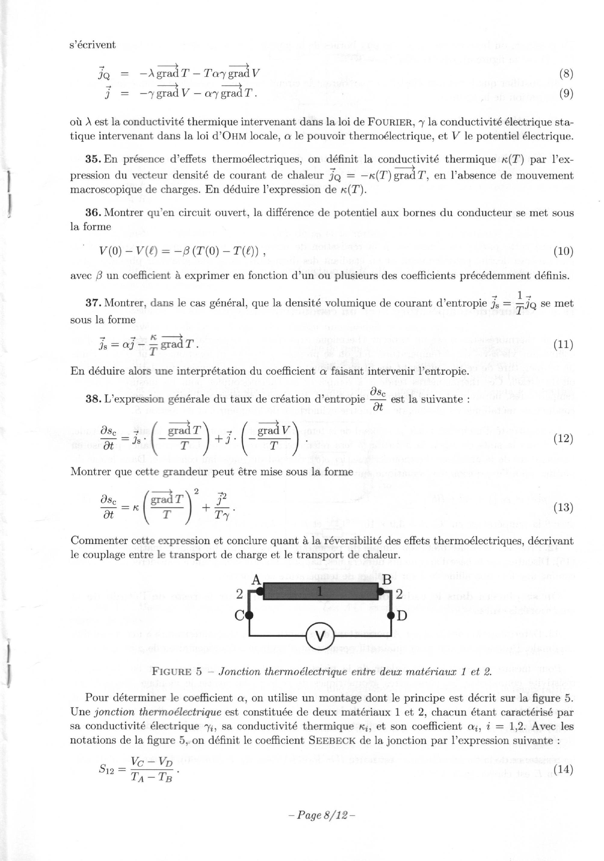 40. Exprimer le coefficient en fonction des coefficients du pouvoir thermoélectrique de chacun des deux matériaux.