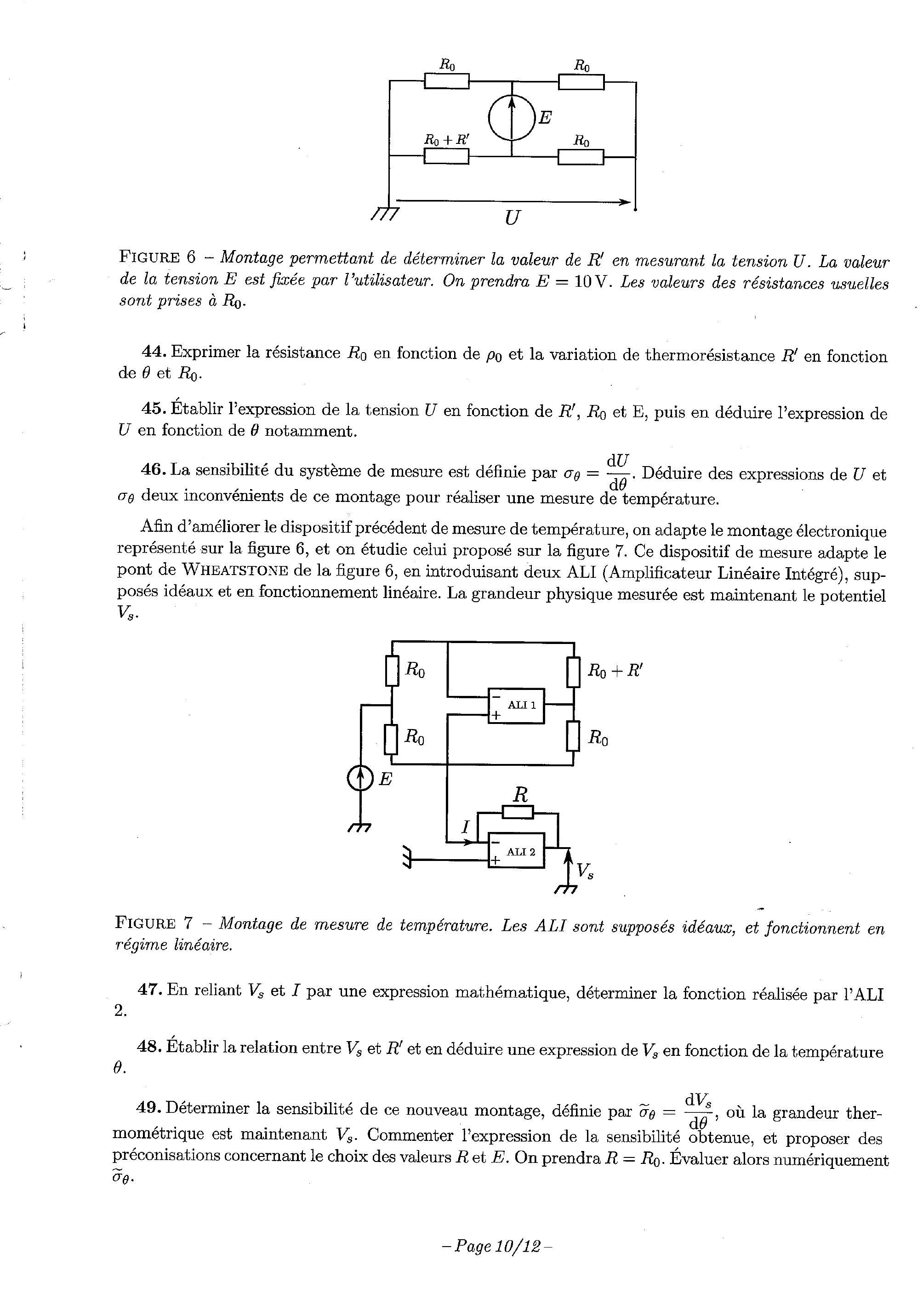 3. La sensibilité du système de mesure est définie par . Déduire des expressions de et deux inconvénients de ce montage pour réaliser une mesure de température.