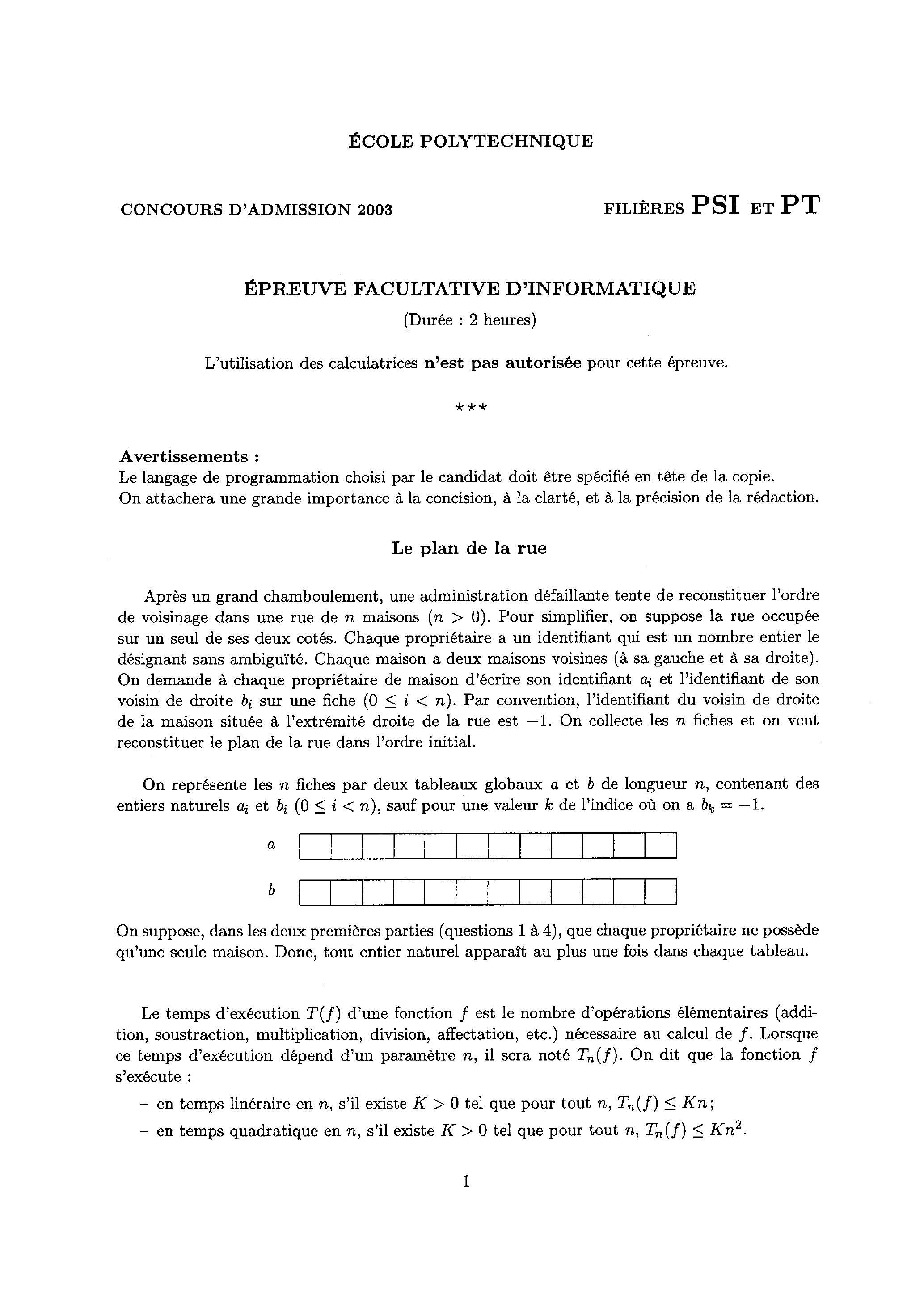 Polytechnique Informatique Annulée PSI PT 2003 - Version Web LaTeX | WikiPrépa | WikiPrépa