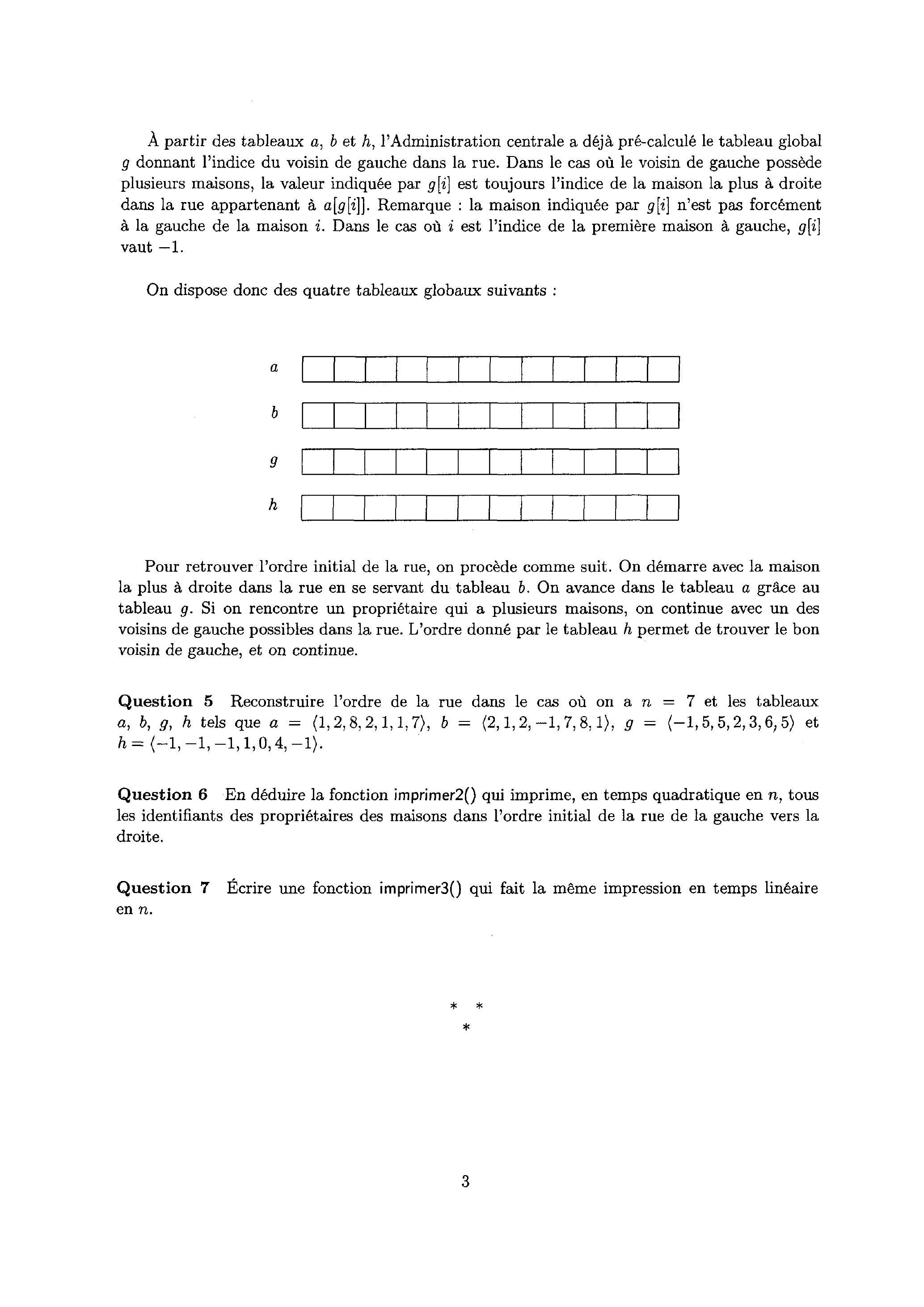 Question 5 Reconstruire l'ordre de la rue dans le cas où on a et les tableaux tels que et .