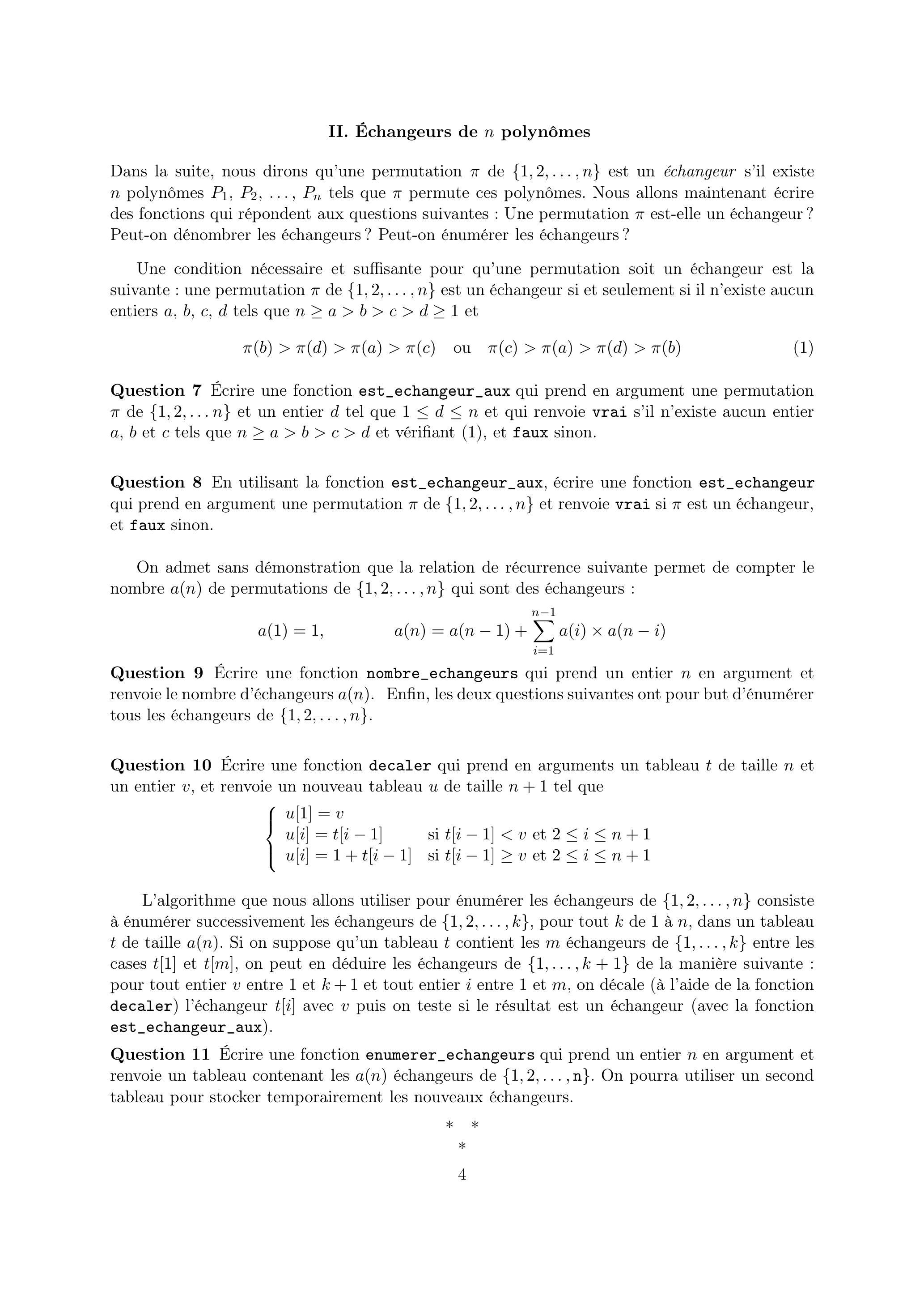 Dans la suite, nous dirons qu'une permutation de est un échangeur s'il existe polynômes tels que permute ces polynômes. Nous allons maintenant écrire des fonctions qui répondent aux questions suivantes : Une permutation est-elle un échangeur? Peut-on dénombrer les échangeurs? Peut-on énumérer les échangeurs?