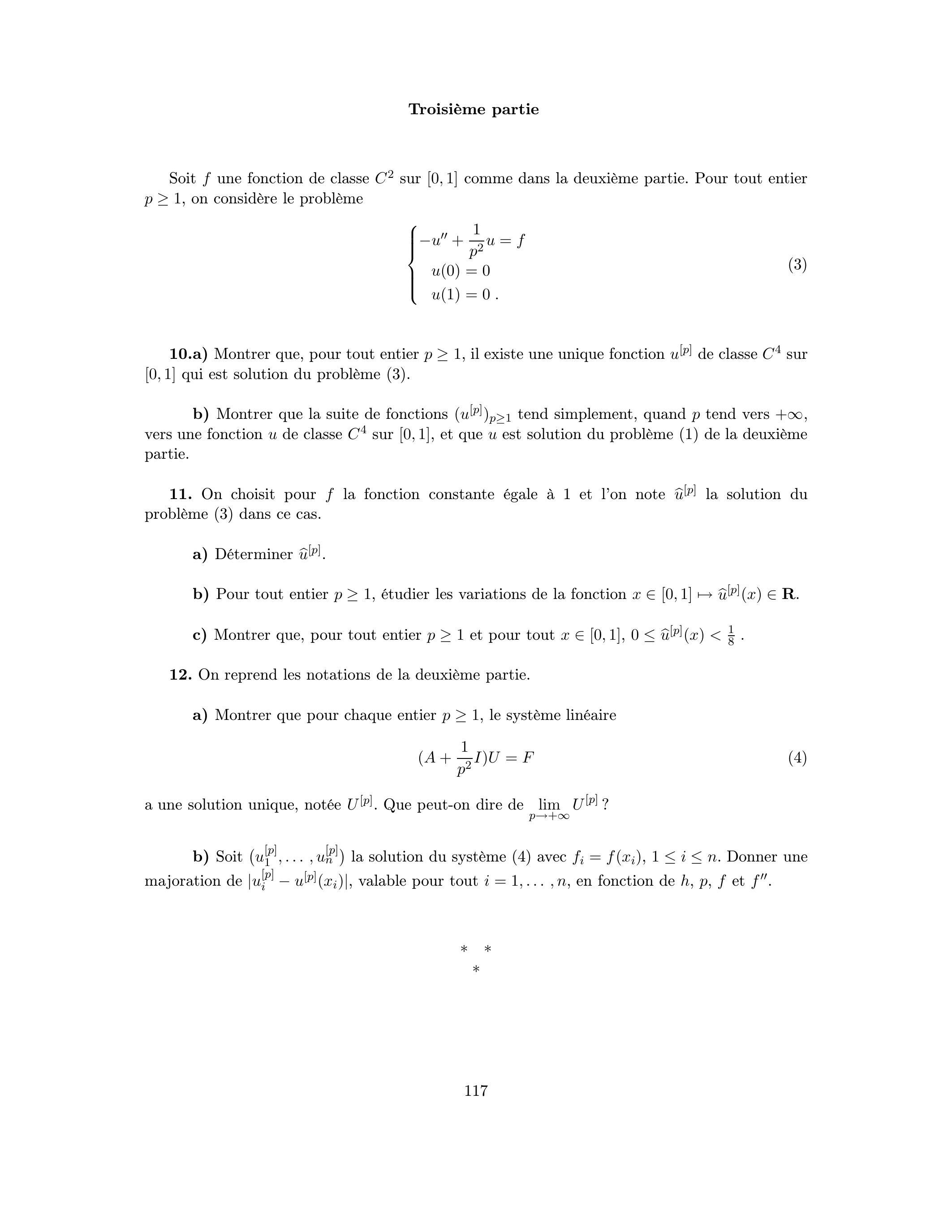 Soit une fonction de classe sur comme dans la deuxième partie. Pour tout entier , on considère le problème