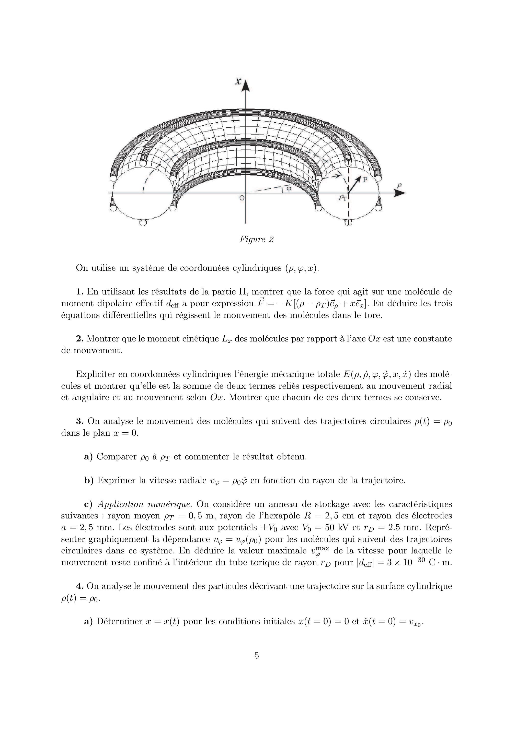 En utilisant les résultats de la partie II, montrer que la force qui agit sur une molécule de moment dipolaire effectif a pour expression . En déduire les trois équations différentielles qui régissent le mouvement des molécules dans le tore.