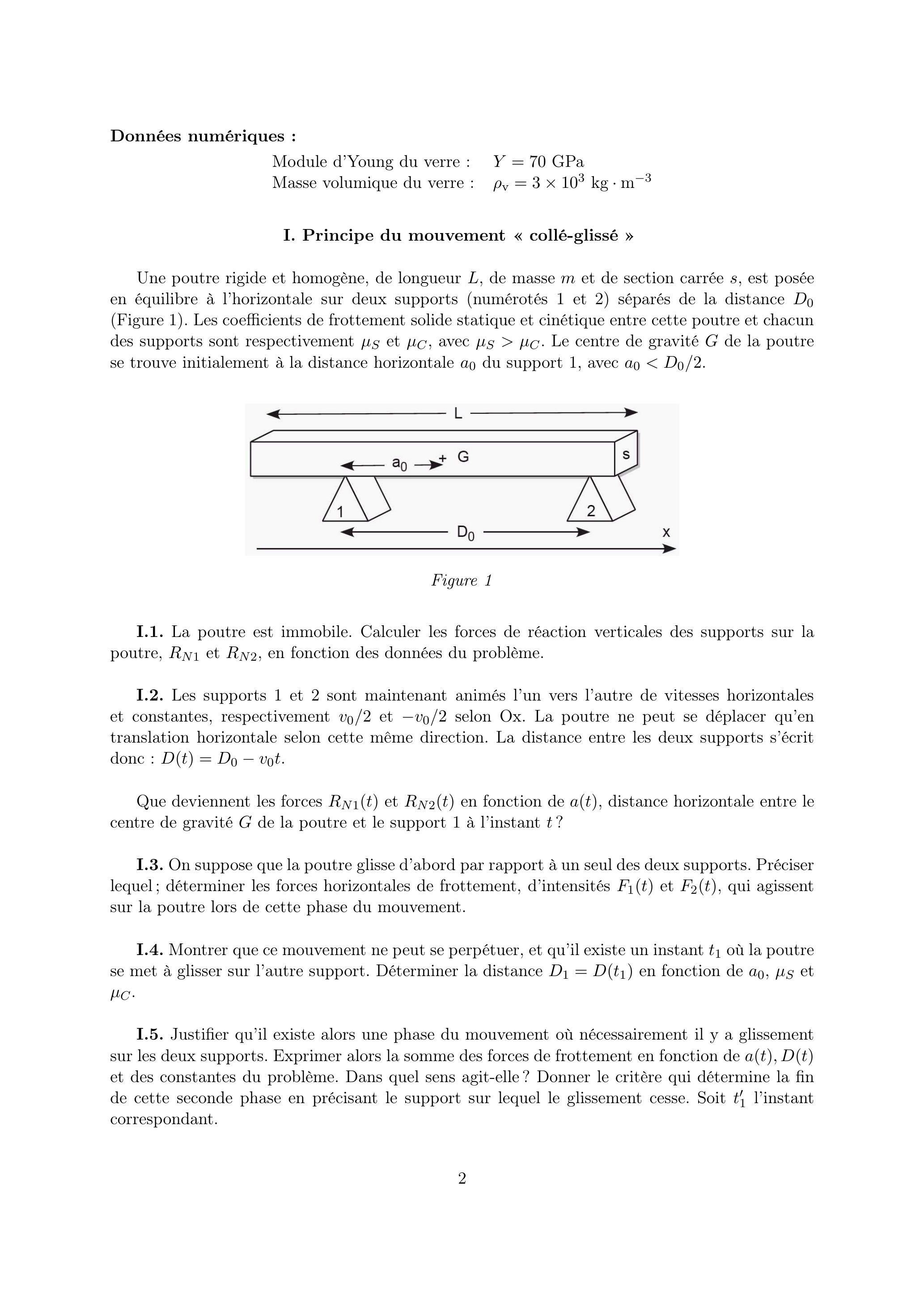 I.4. Montrer que ce mouvement ne peut se perpétuer, et qu'il existe un instant où la poutre se met à glisser sur l'autre support. Déterminer la distance en fonction de et .