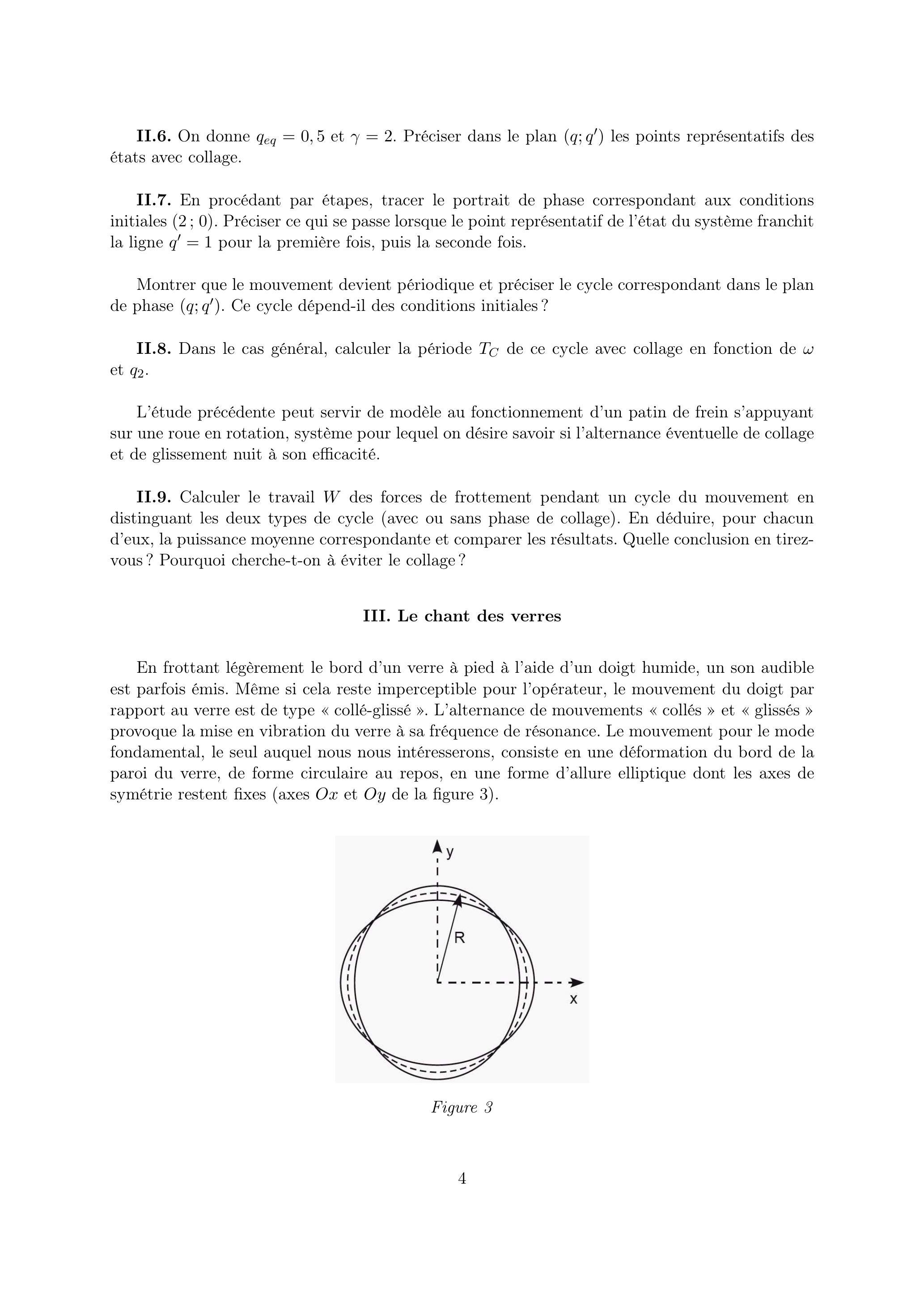 II.9. Calculer le travail des forces de frottement pendant un cycle du mouvement en distinguant les deux types de cycle (avec ou sans phase de collage). En déduire, pour chacun d'eux, la puissance moyenne correspondante et comparer les résultats. Quelle conclusion en tirezvous? Pourquoi cherche-t-on à éviter le collage?