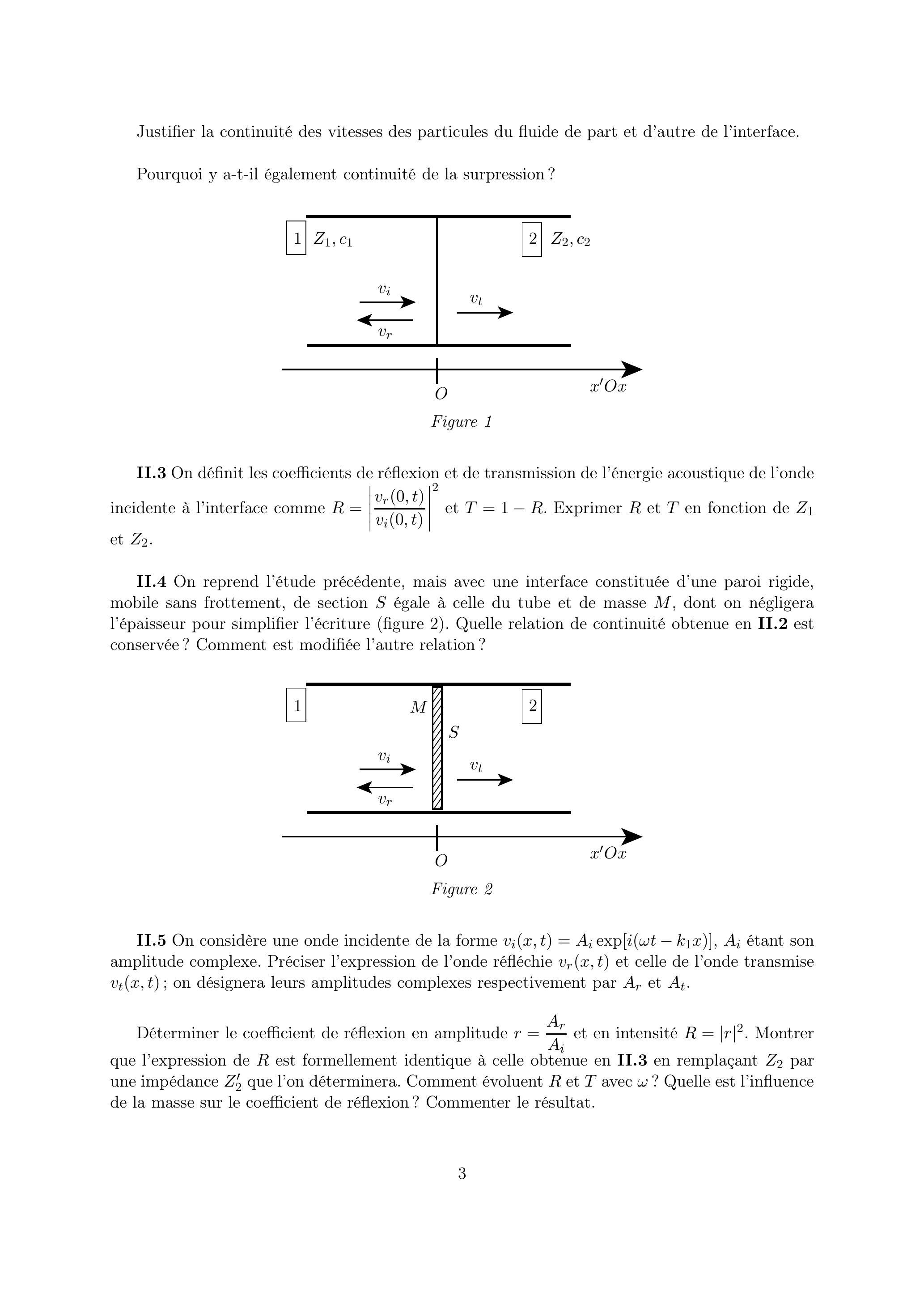 II. 4 On reprend l'étude précédente, mais avec une interface constituée d'une paroi rigide, mobile sans frottement, de section égale à celle du tube et de masse , dont on négligera l'épaisseur pour simplifier l'écriture (figure 2). Quelle relation de continuité obtenue en II. 2 est conservée? Comment est modifiée l'autre relation?