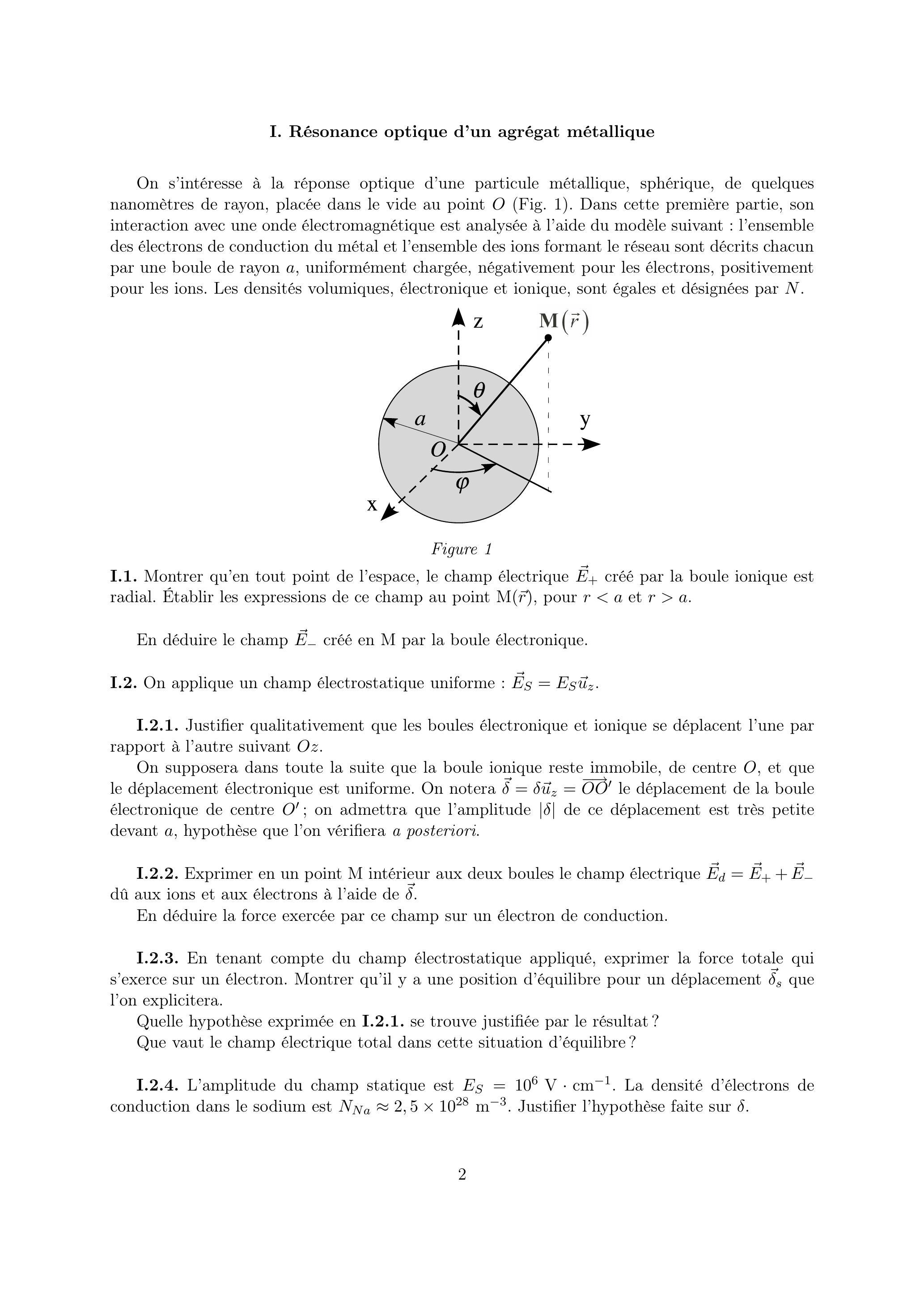III.1. La nanoparticule métallique est sphérique, immobile de centre et de rayon , placée dans le vide et globalement neutre. Comme en I.4.1, on la suppose suffisamment petite pour