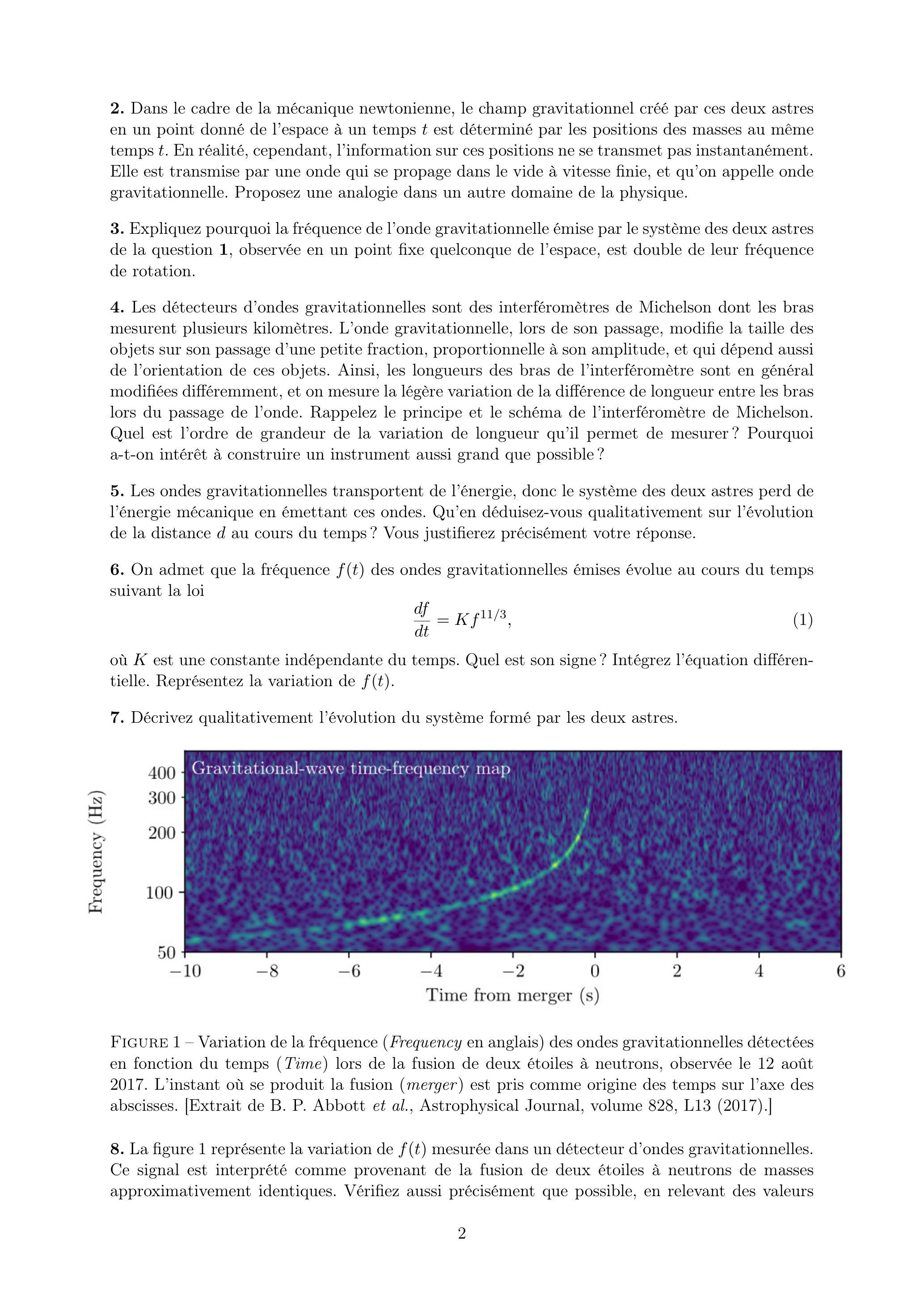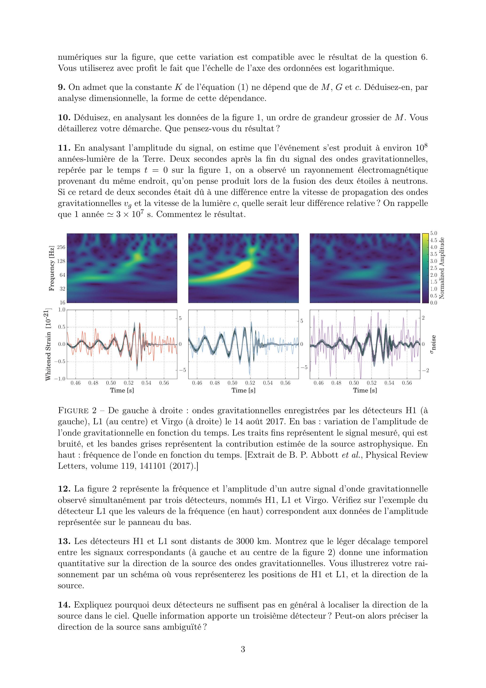 siècle. Les ondes observées sont produites à l'extérieur de notre galaxie lorsque deux astres massifs, initialement en rotation l'un par rapport à l'autre, se rapprochent et fusionnent en un seul. Ce problème étudie quelques aspects de ces événements et de leur détection.