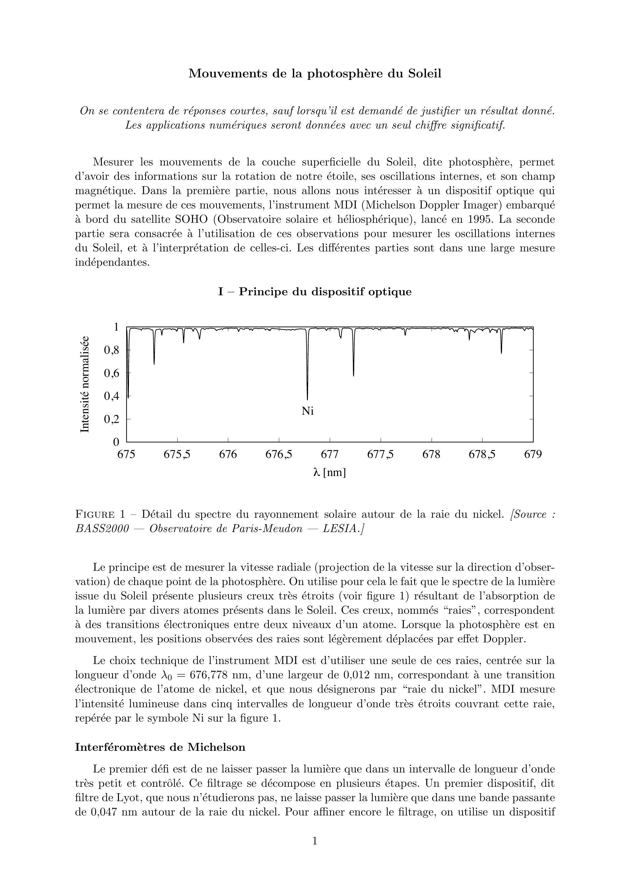 21. Cette vitesse radiale atteint la valeur près de l'équateur du Soleil. Que vaut alors le déplacement de la raie du nickel résultant de l'effet Doppler? On rappelle que la vitesse de la lumière dans le vide vaut . Comment se compare-t-il à la largeur de la raie? Commenter.